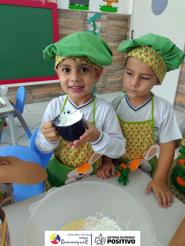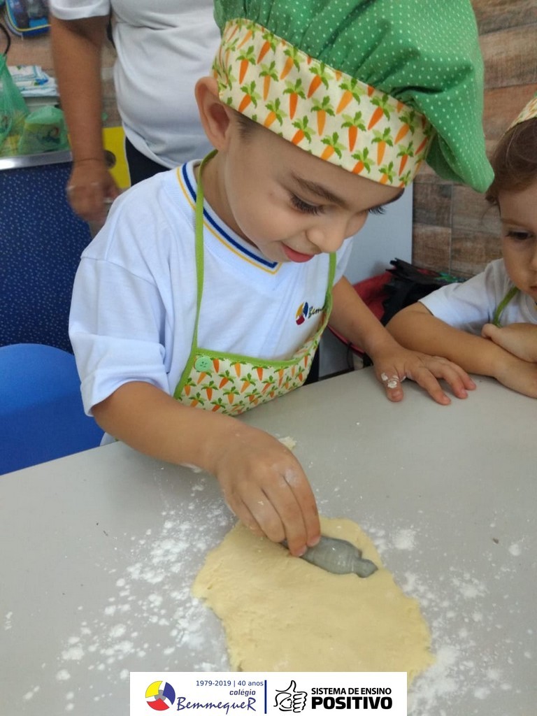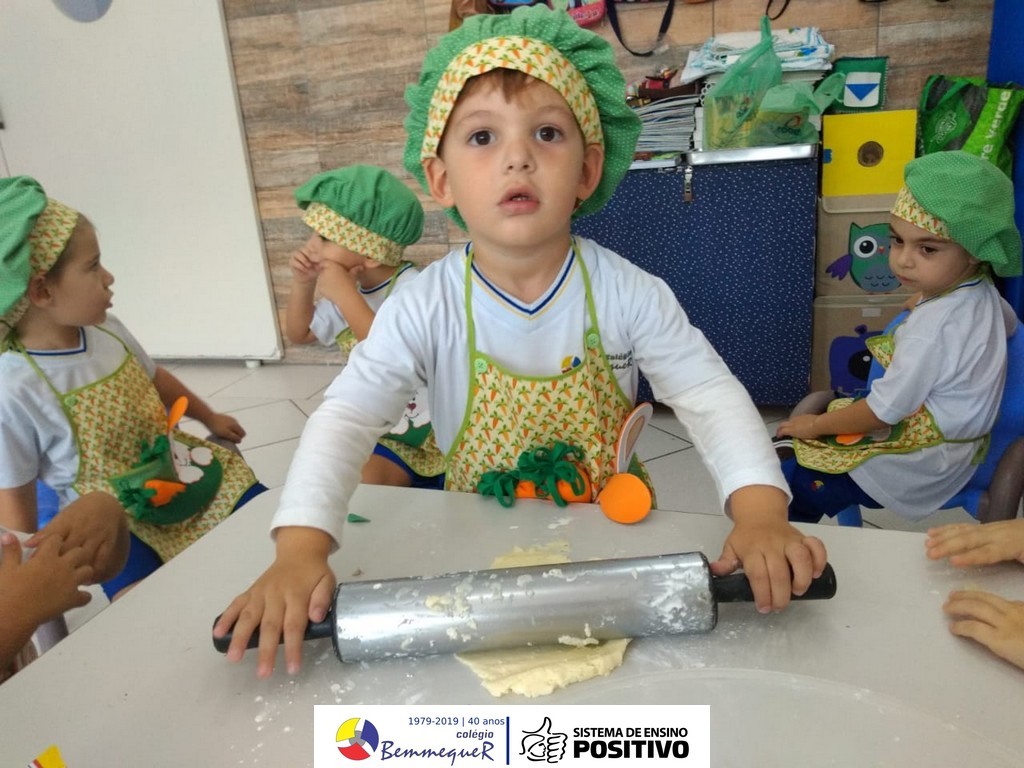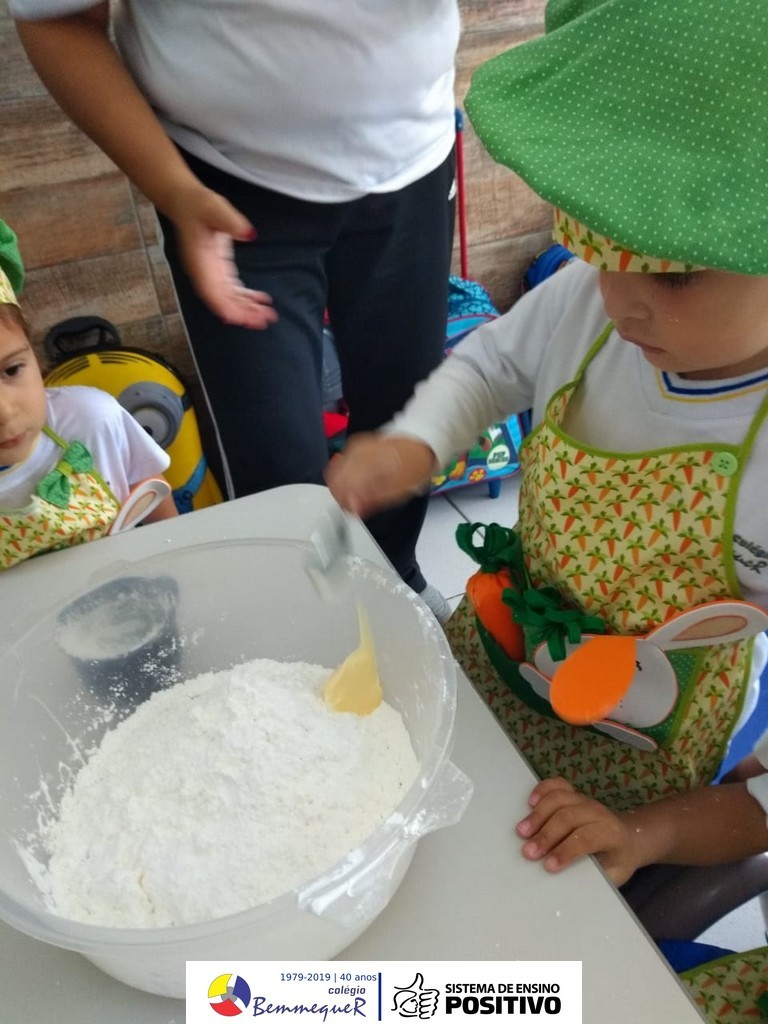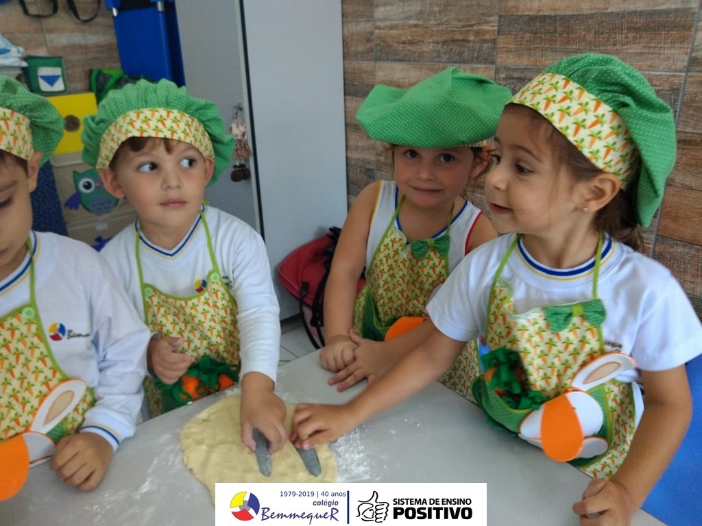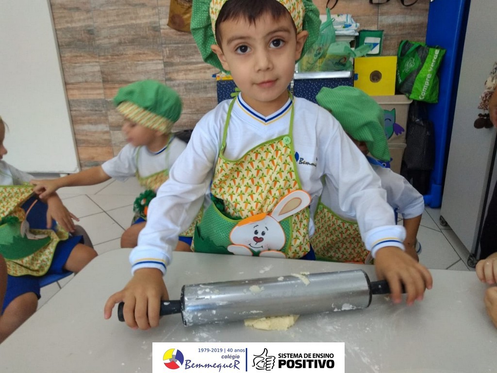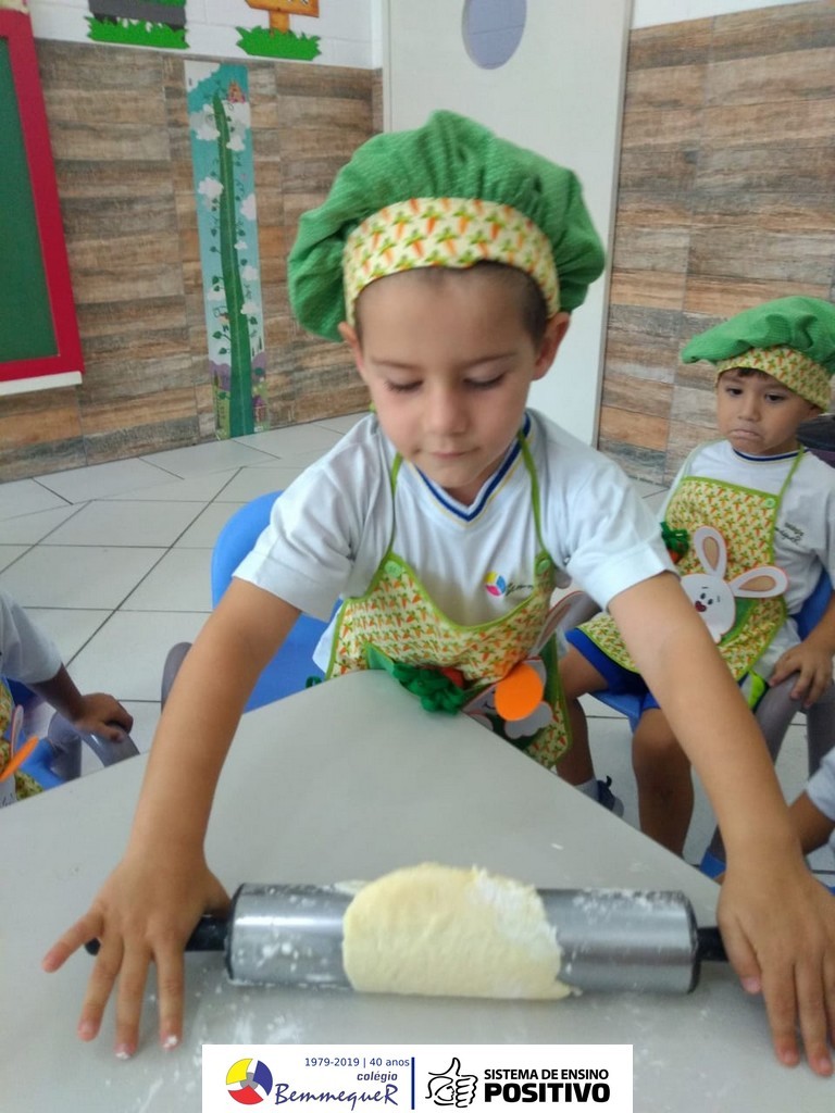 Os alunos do Grupo 3 tiverem uma aula de culinária divertida para comemorar a Páscoa, onde foram feitos biscoitos deliciosos em formato de cenoura pelos Masters Chefs mais fofos.