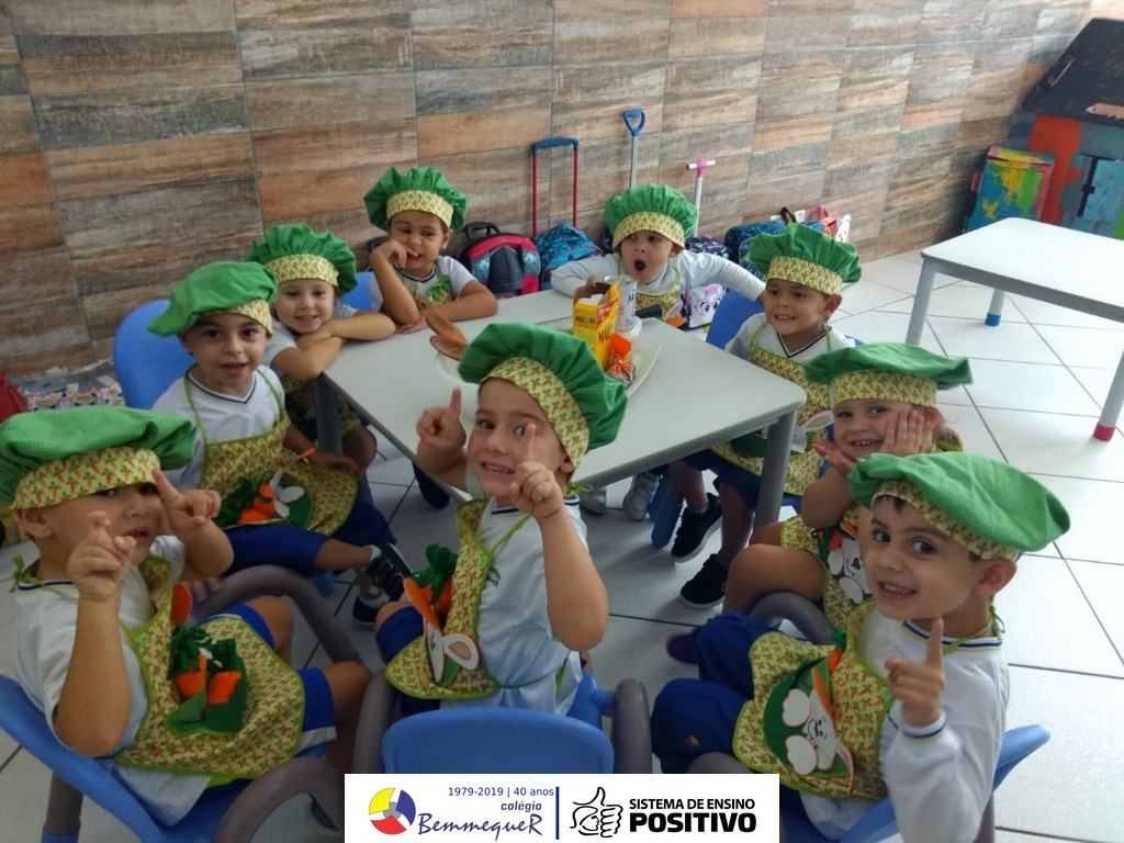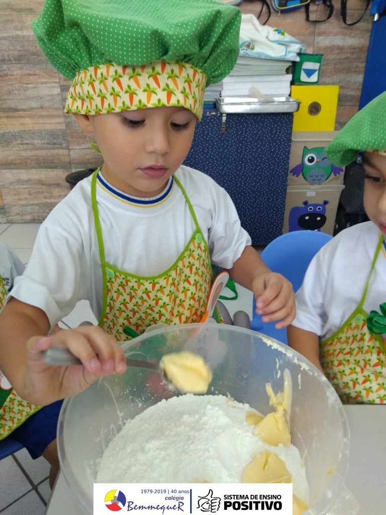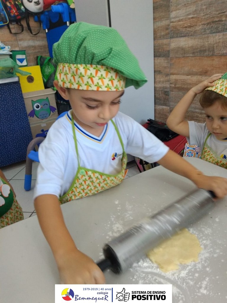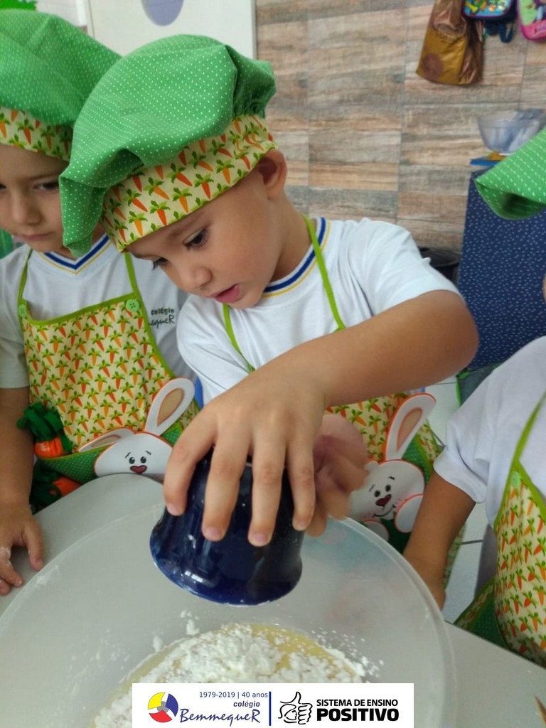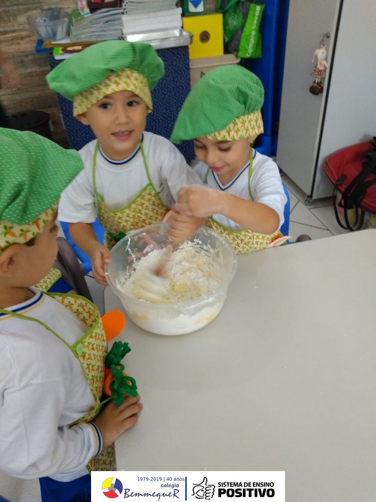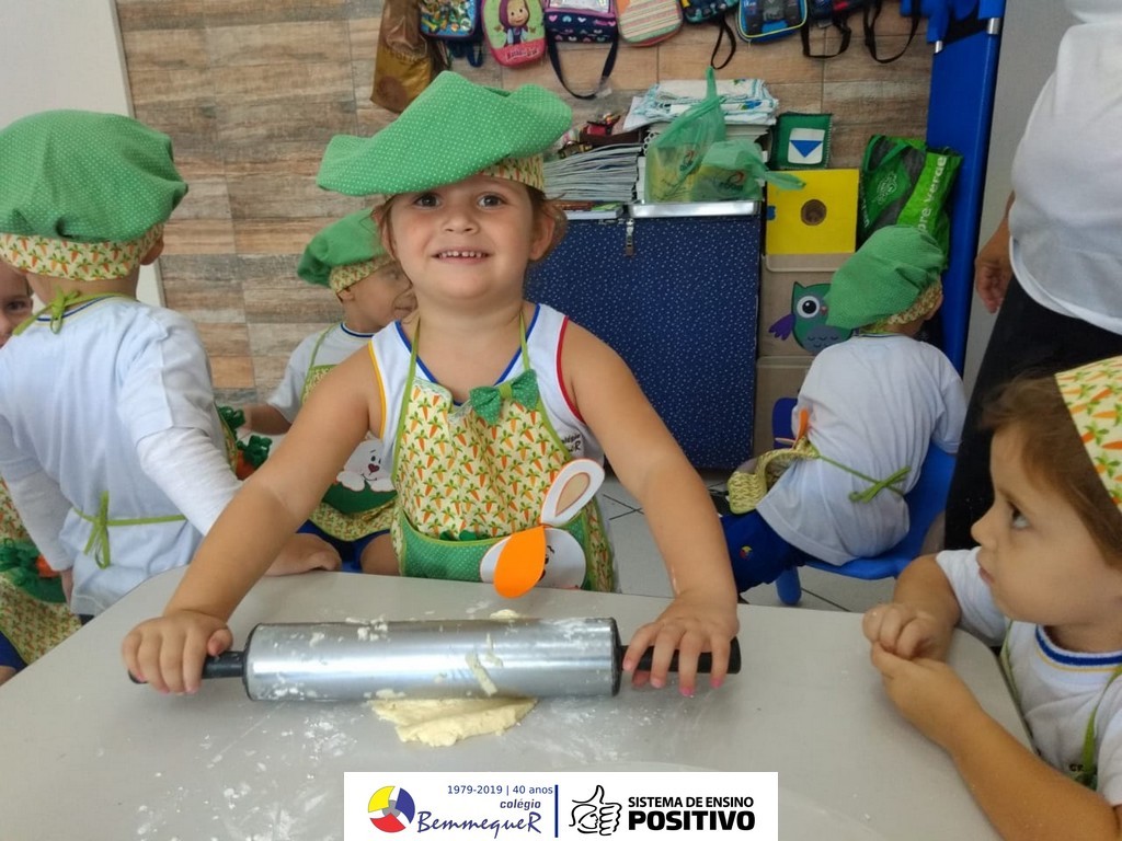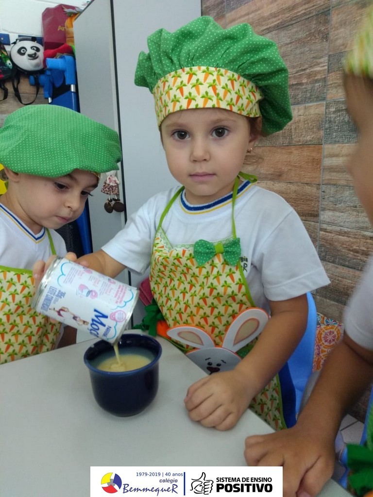 Os alunos do Grupo 3 tiverem uma aula de culinária divertida para comemorar a Páscoa, onde foram feitos biscoitos deliciosos em formato de cenoura pelos Masters Chefs mais fofos.