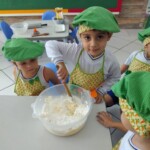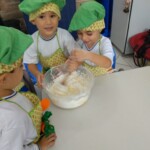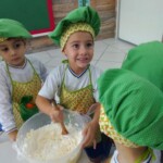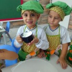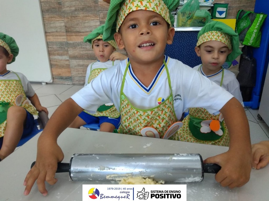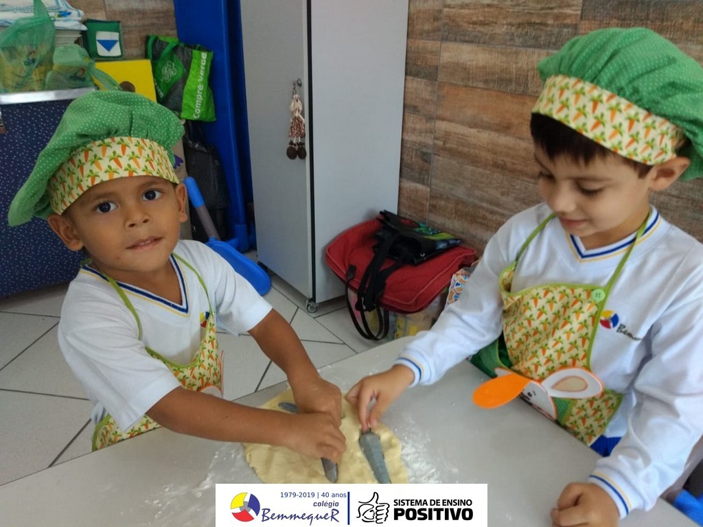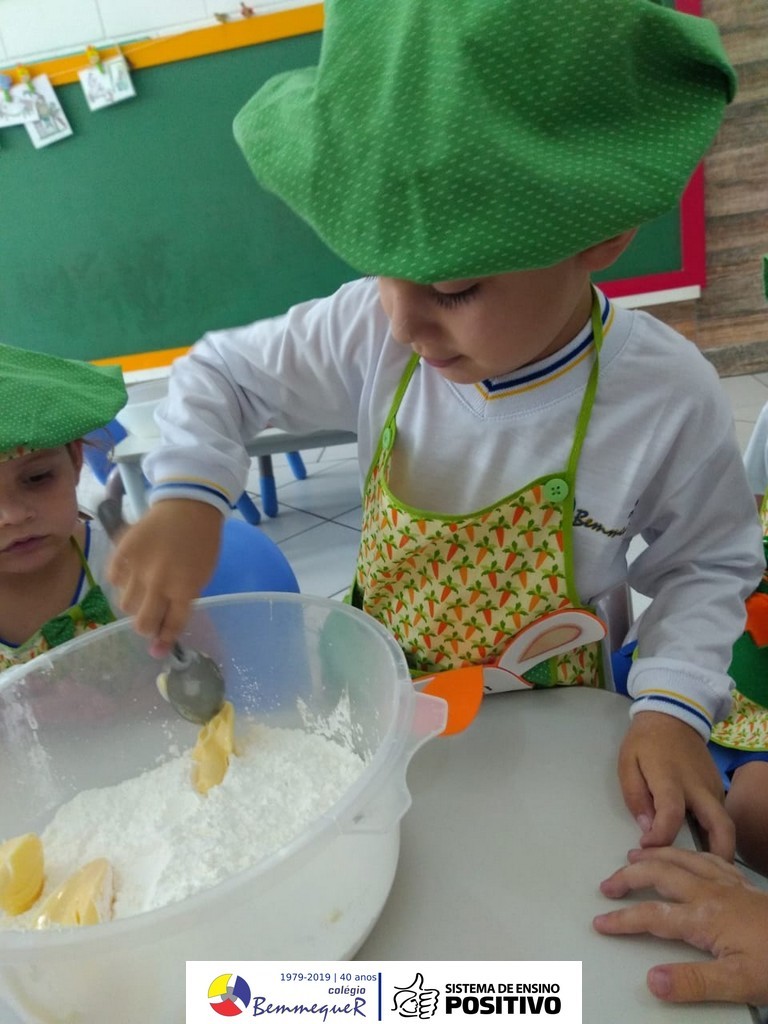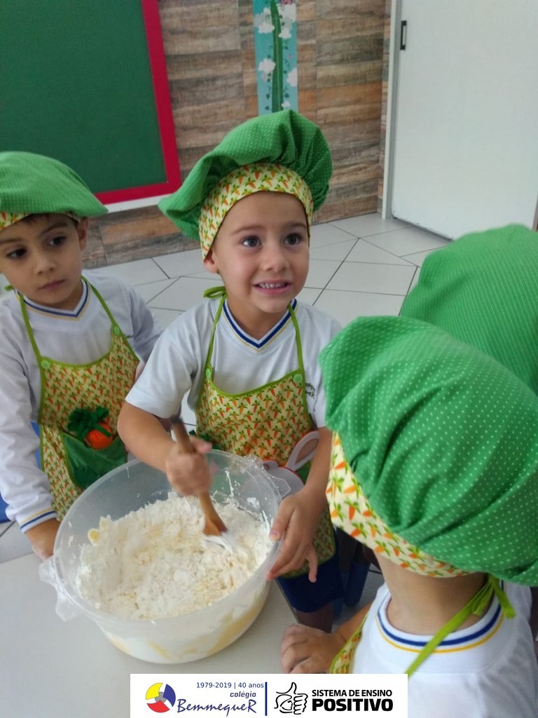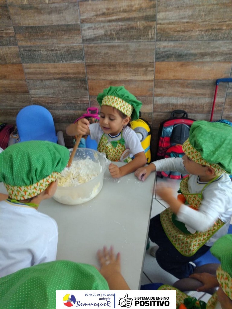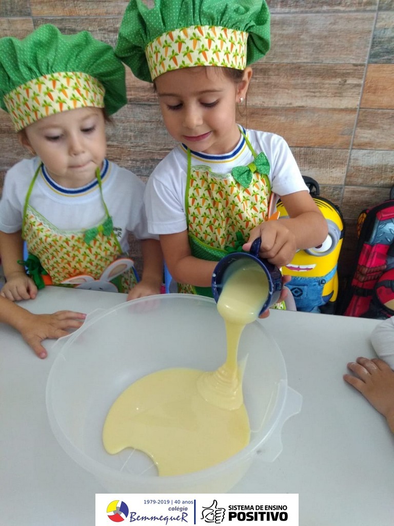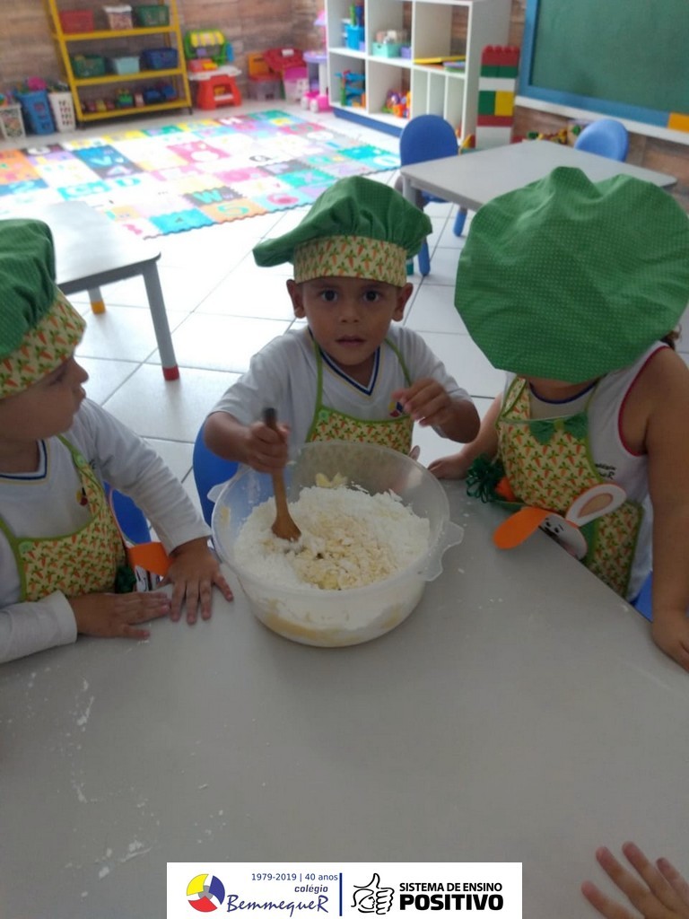 Os alunos do Grupo 3 tiverem uma aula de culinária divertida para comemorar a Páscoa, onde foram feitos biscoitos deliciosos em formato de cenoura pelos Masters Chefs mais fofos.