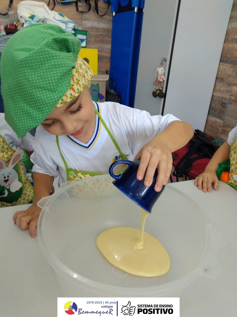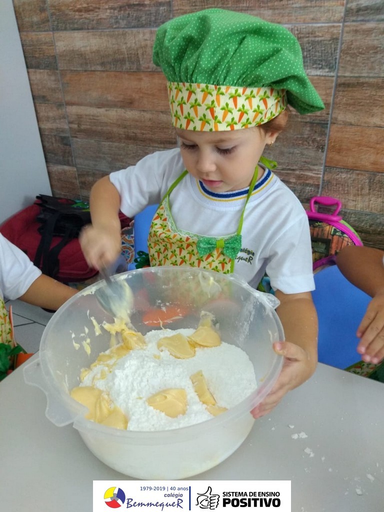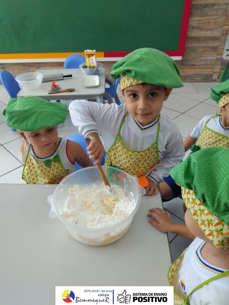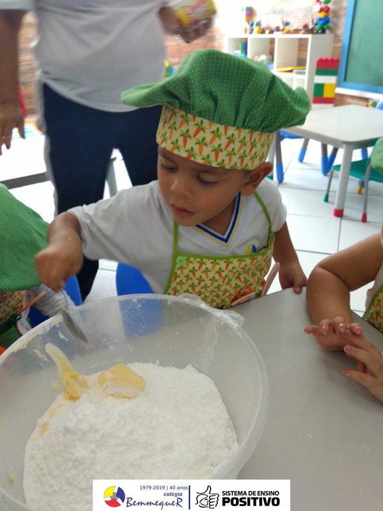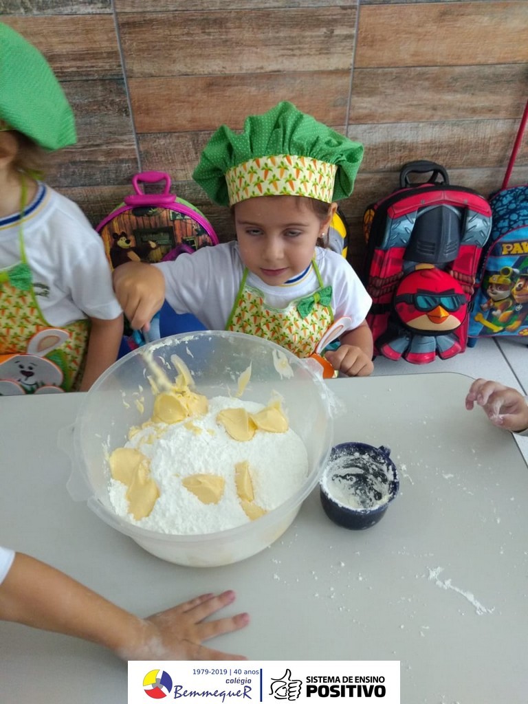 O objetivo desta aula foi de conhecer vários ingredientes, quantidades diferentes e ainda aprender a manusear a massa.