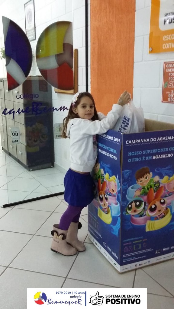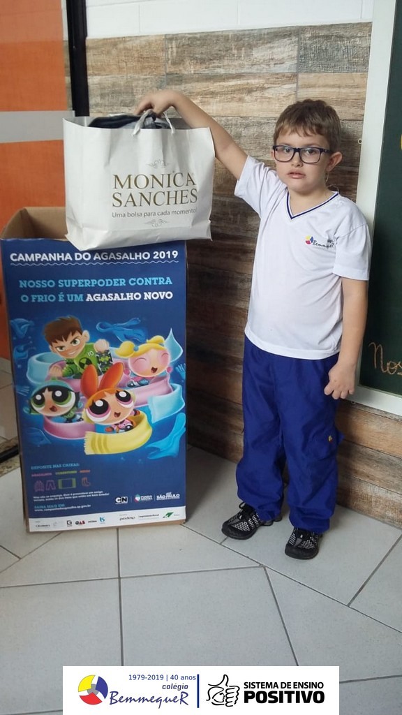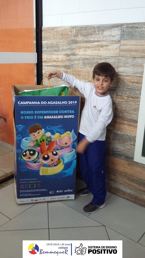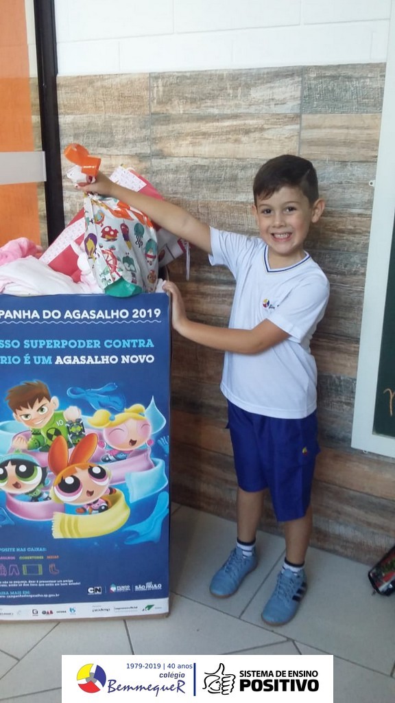 Pensando assim, os alunos do 1º Ano estão exercendo sua solidariedade colaborando com a campanha do agasalho.