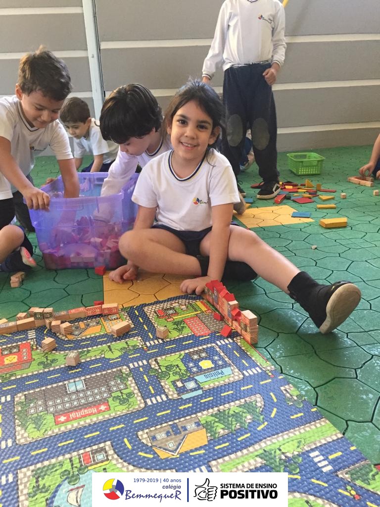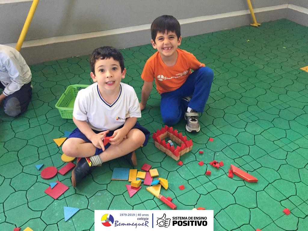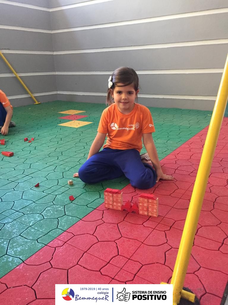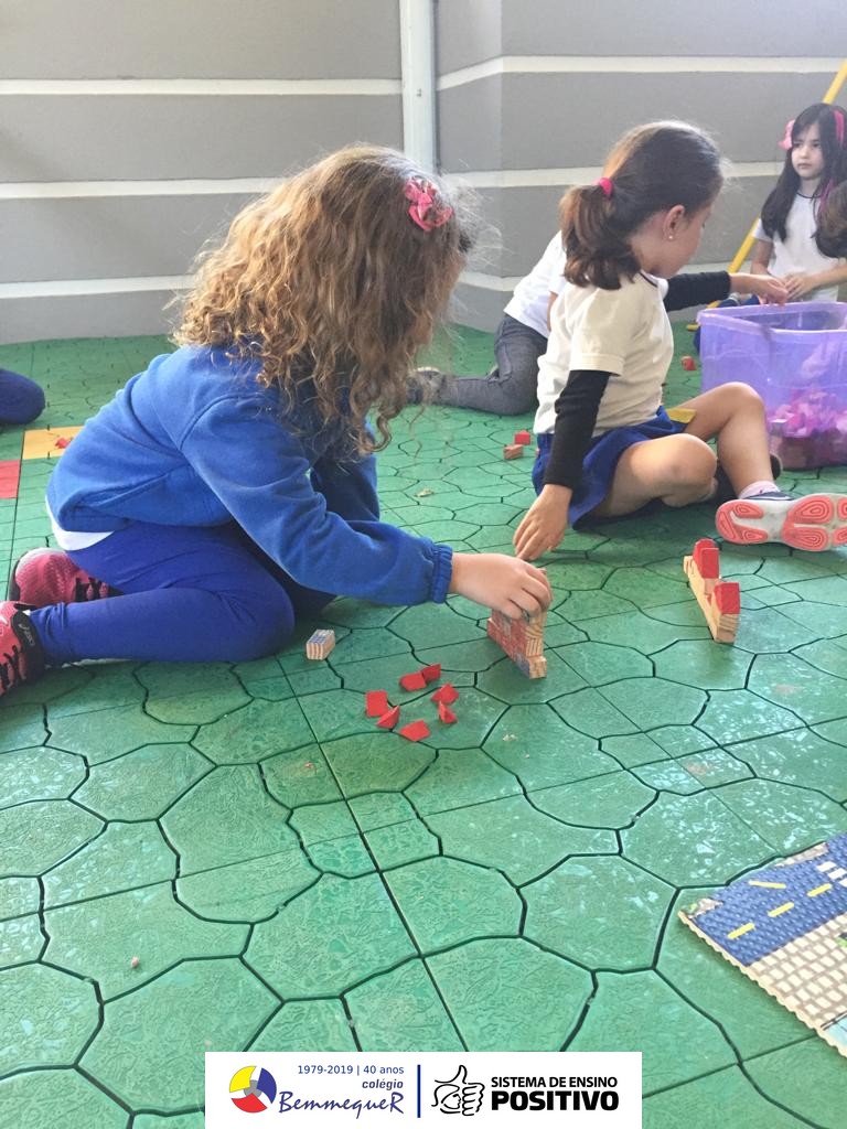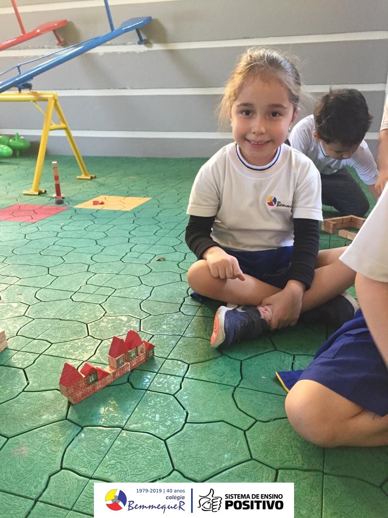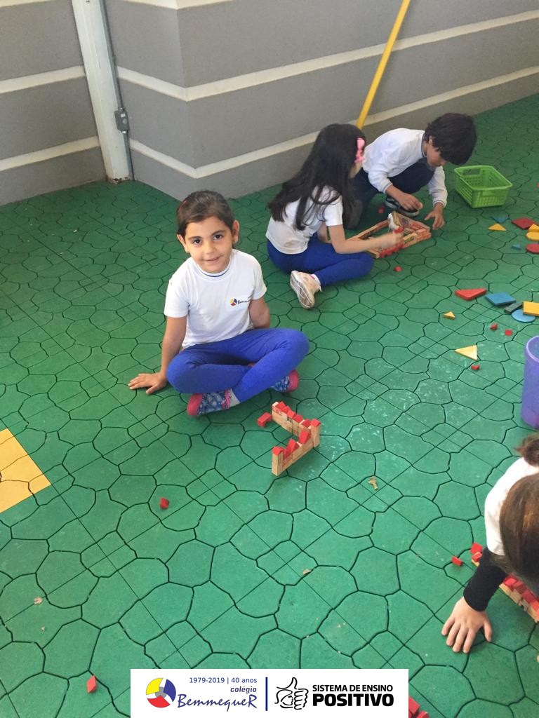 Nesta brincadeira os alunos utilizaram blocos de construção para fazer de conta que são gigantes, como na história “O Gigante Egoísta”, como estudaram na apostila.