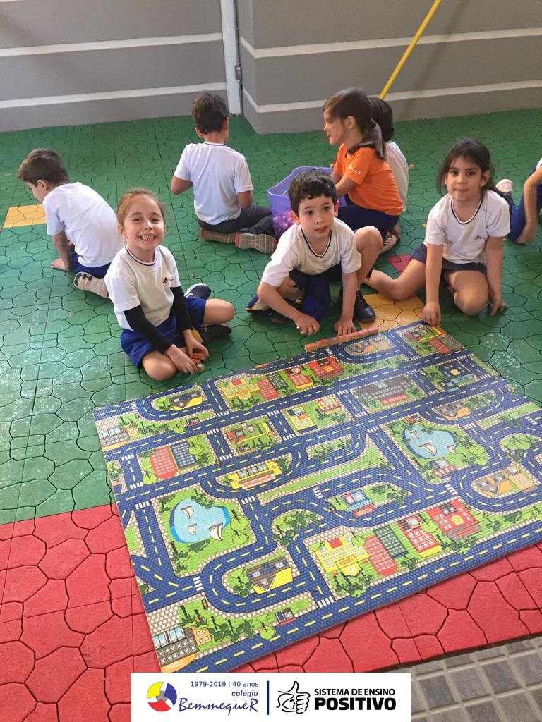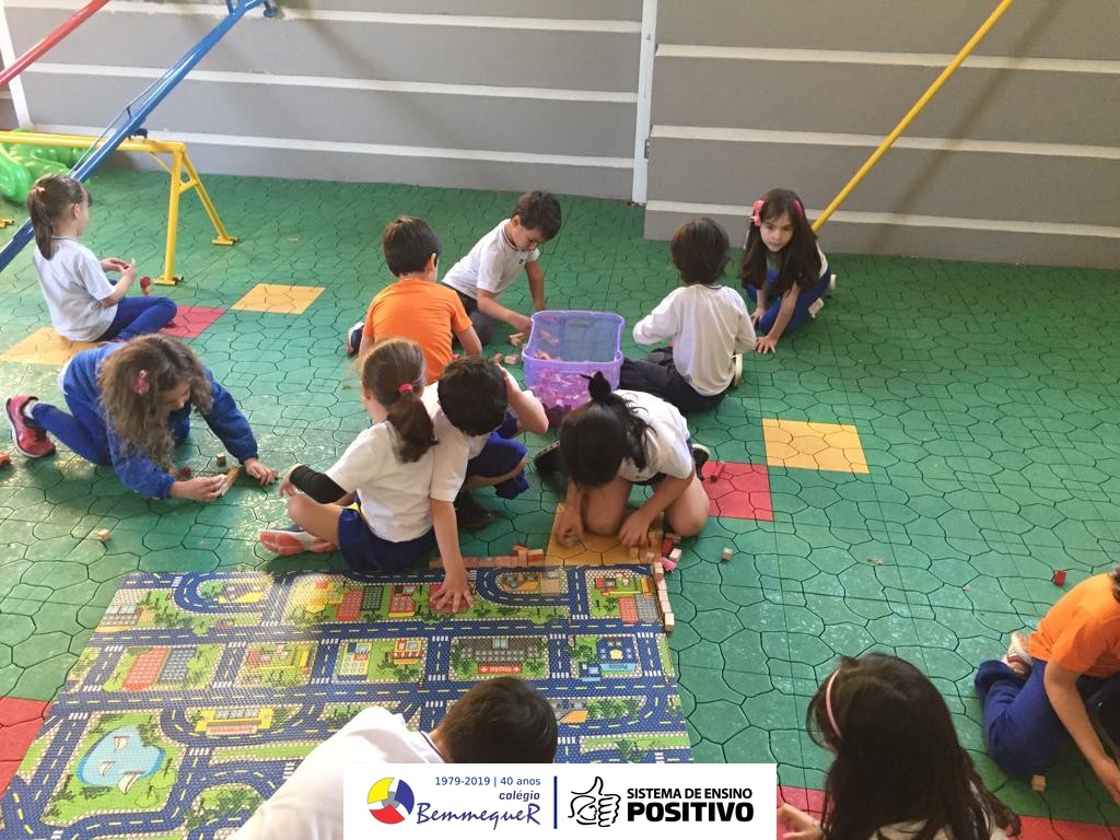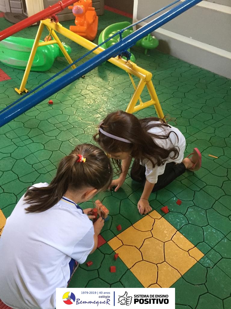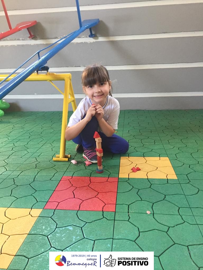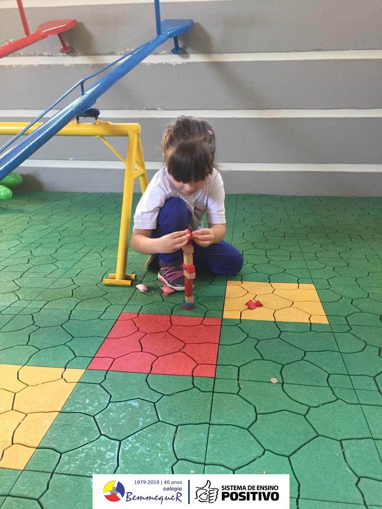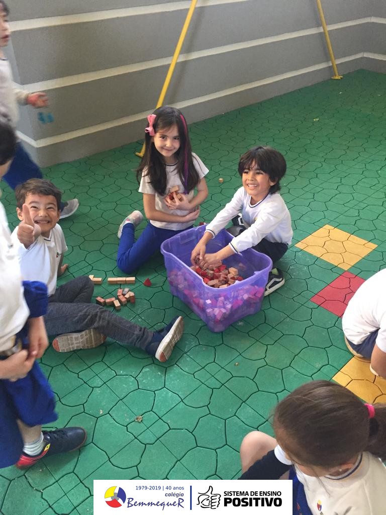 Nesta brincadeira os alunos utilizaram blocos de construção para fazer de conta que são gigantes, como na história “O Gigante Egoísta”, como estudaram na apostila.