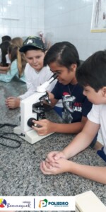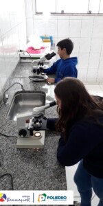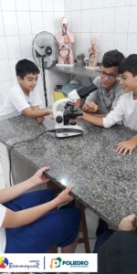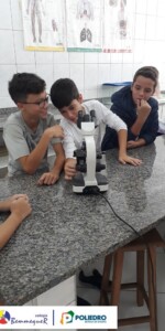 Nas aulas dos dias 07 e 12 de fevereiro, os alunos do 7º ano tiveram um contato próximo com o Microscópio Óptico Comum, instrumento utilizado em laboratório para a observação de células e algumas de suas estruturas.