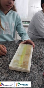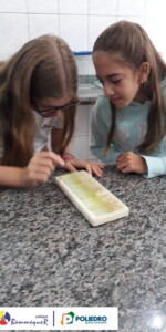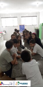 Os alunos também fizeram a observação de células vegetais, podendo identificar a parede celular, membrana plasmática, citoplasma e núcleo.