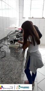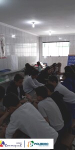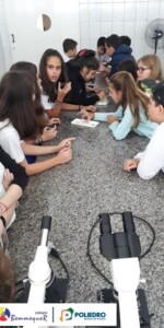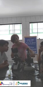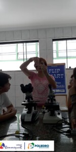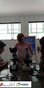Aprenderam sobre cada uma de suas partes e sobre o seu funcionamento, além dos procedimentos para a montagem das lâminas utilizadas para as observações.