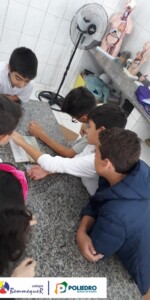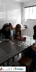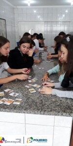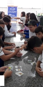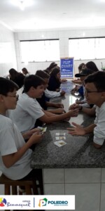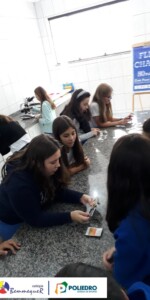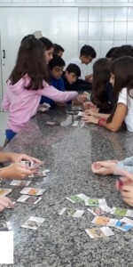 Enquanto alguns alunos utilizavam o microscópio, o restante trabalhava um jogo relacionado com a classificação biológica dos seres vivos.