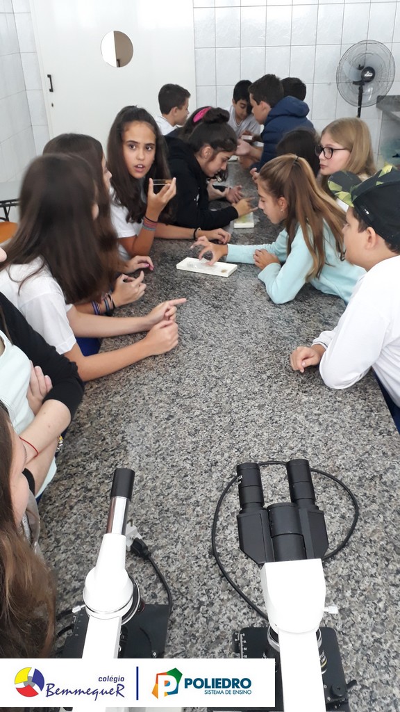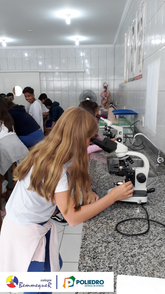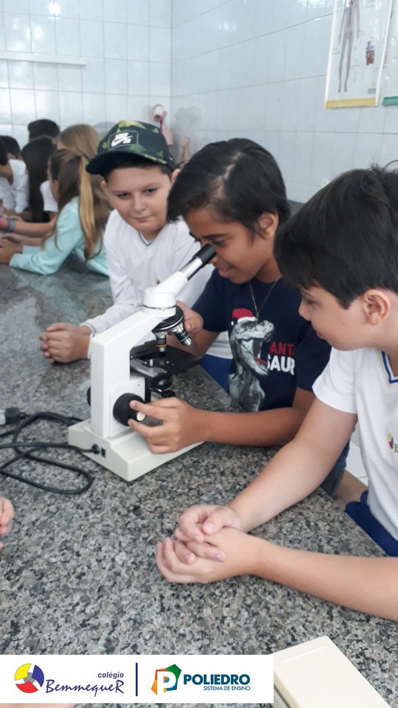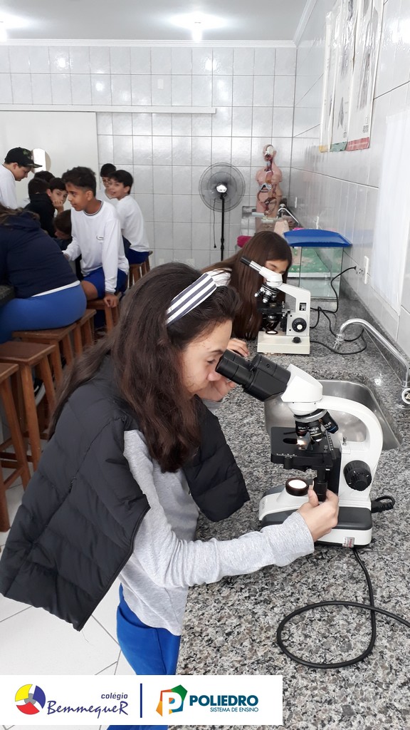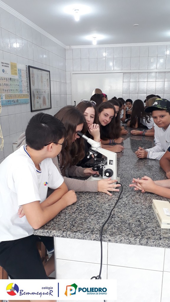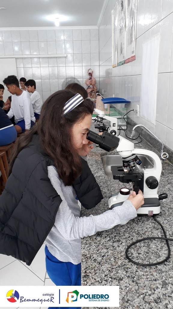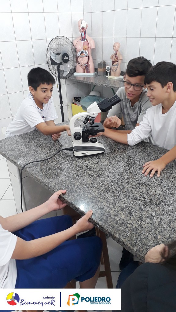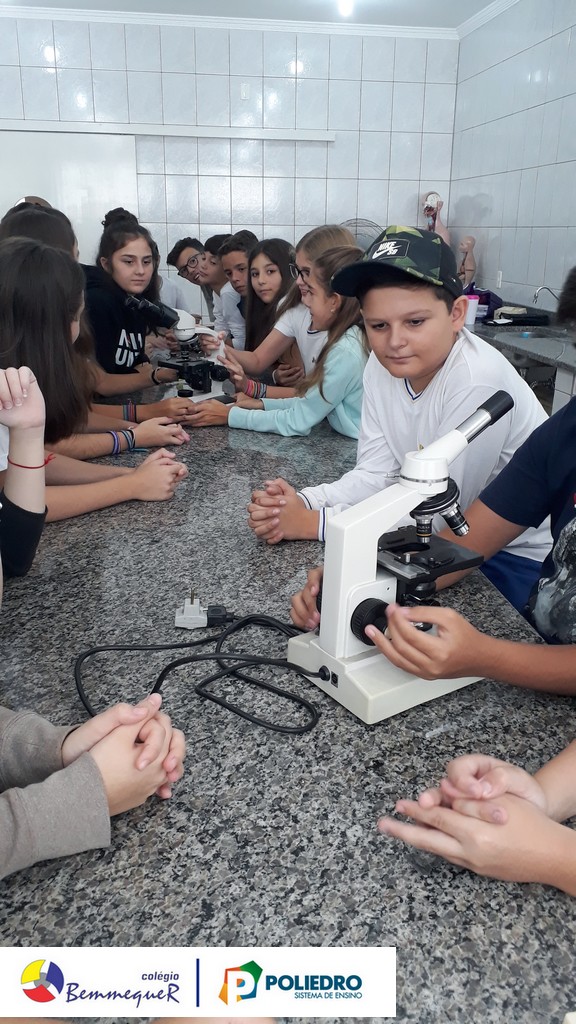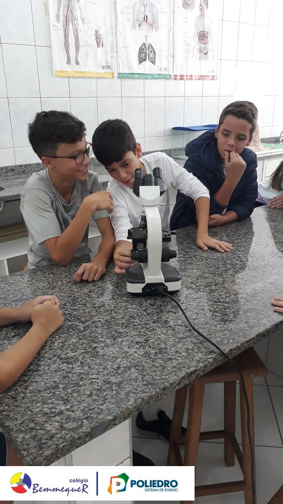 Nas aulas dos dias 07 e 12 de fevereiro, os alunos do 7º ano tiveram um contato próximo com o Microscópio Óptico Comum, instrumento utilizado em laboratório para a observação de células e algumas de suas estruturas.
