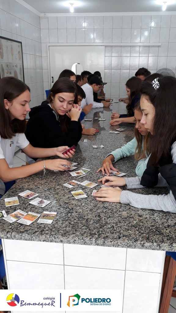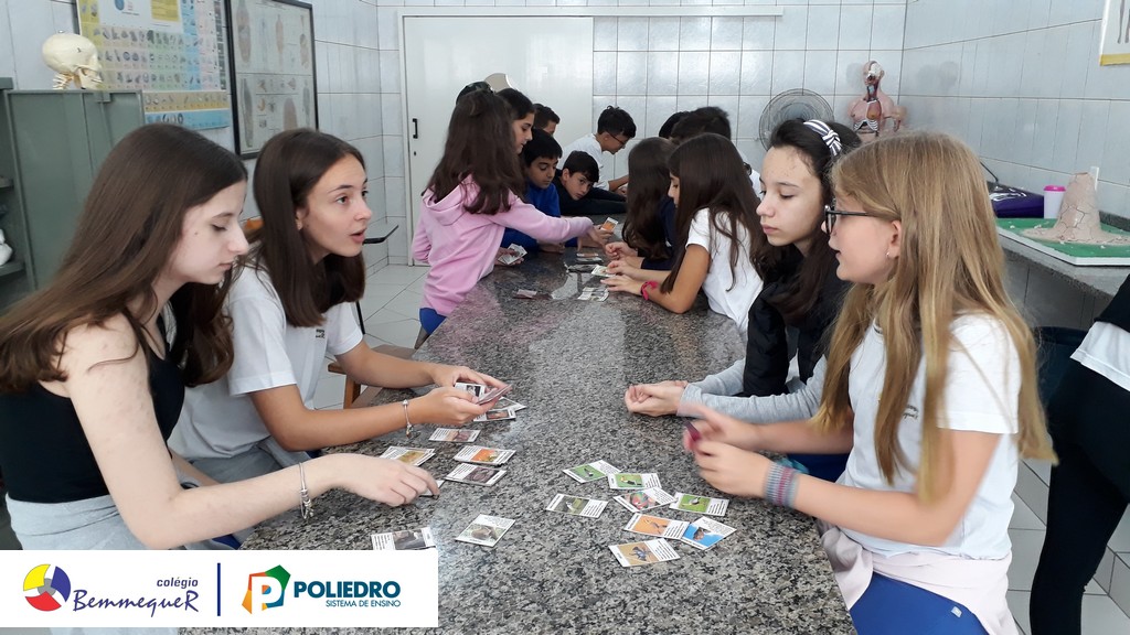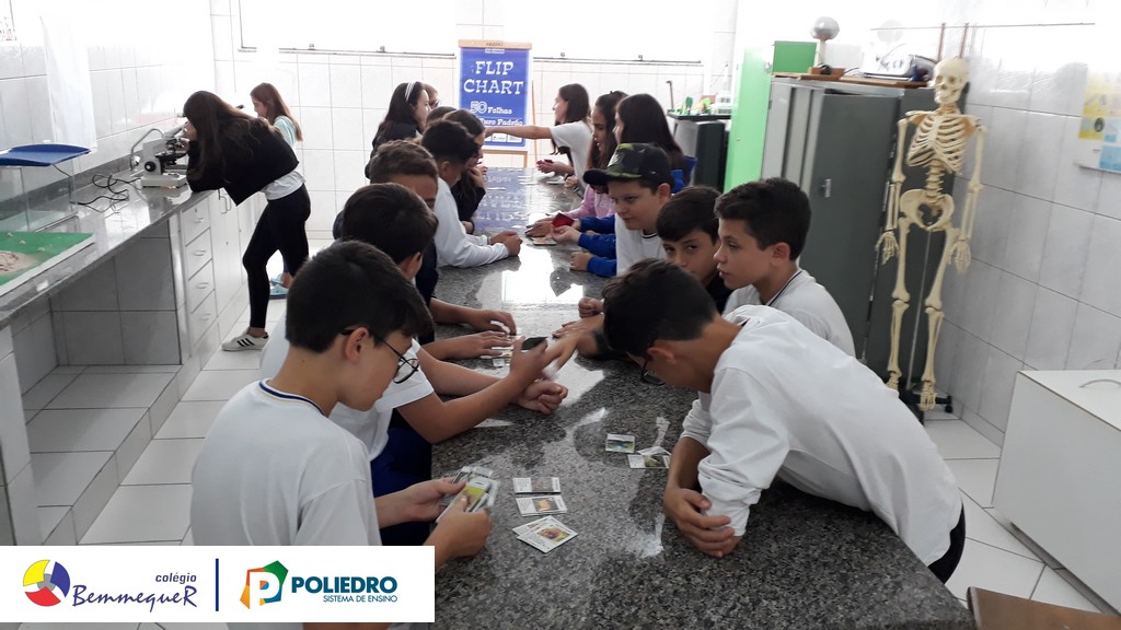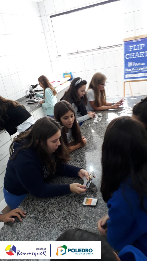 Enquanto alguns alunos utilizavam o microscópio, o restante trabalhava um jogo relacionado com a classificação biológica dos seres vivos.
