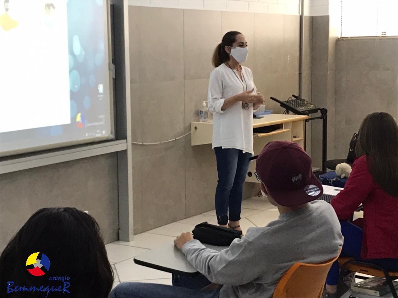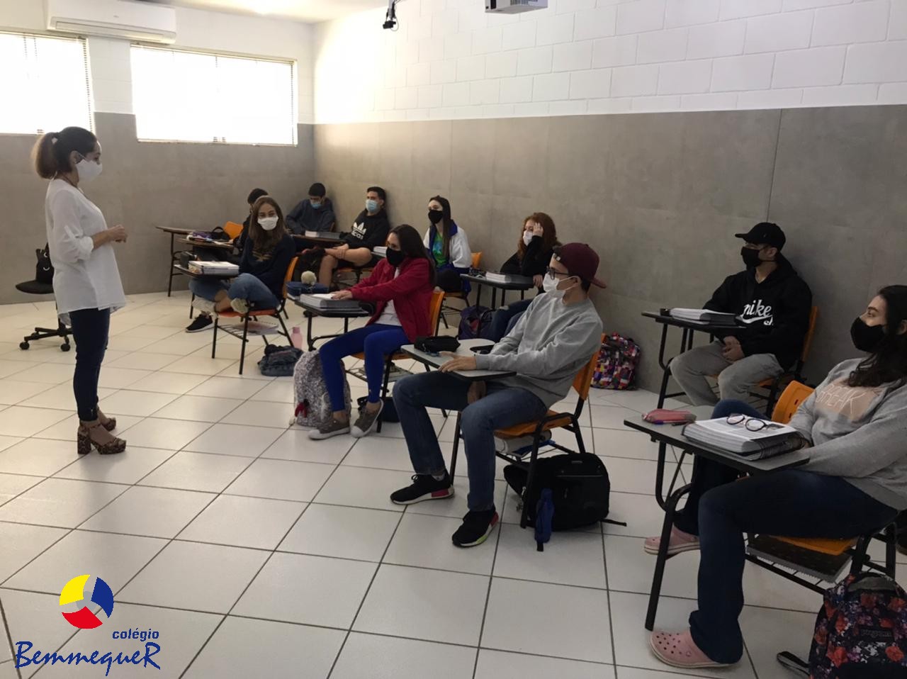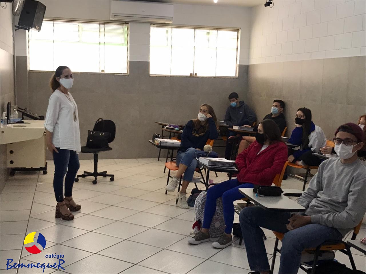 Flávia conversou com os alunos sobre as profissões almejadas por eles: Medicina, Psicologia, Nutrição, Aviação, Engenharia, Veterinária, Economia. A turma de 2021 está diversificada, cheia de sonhos e ideias novas.