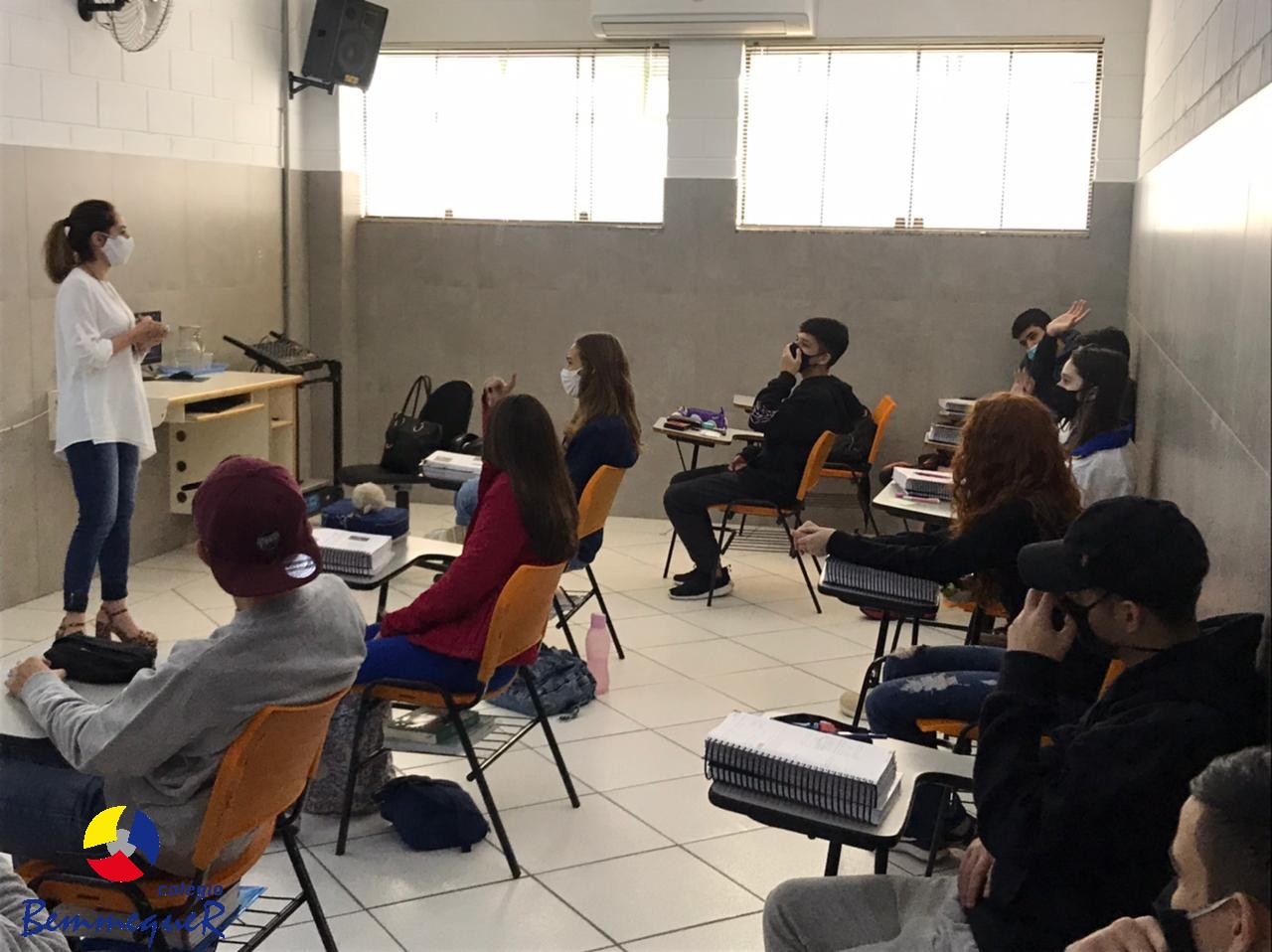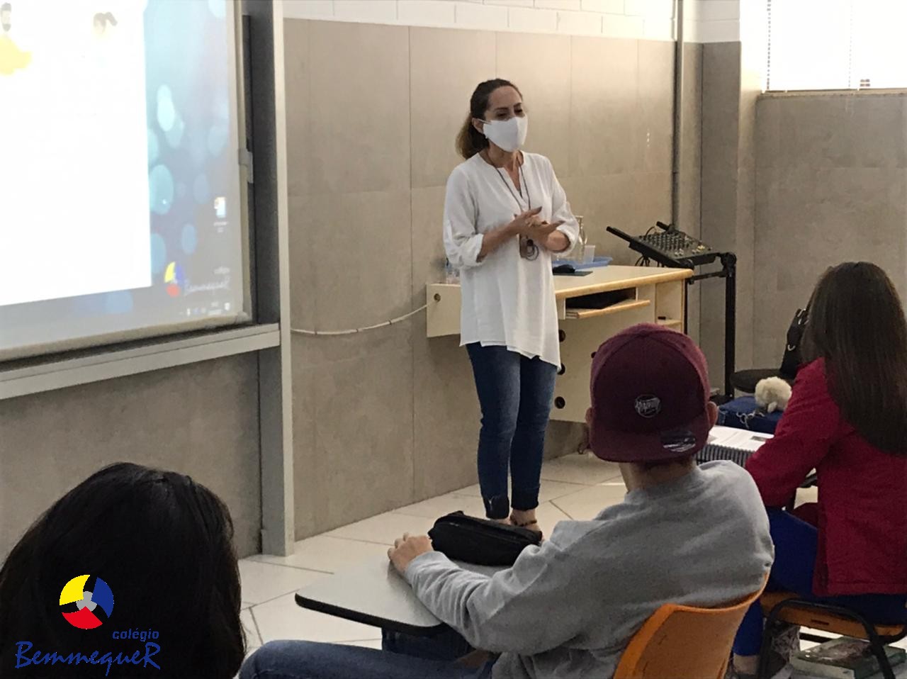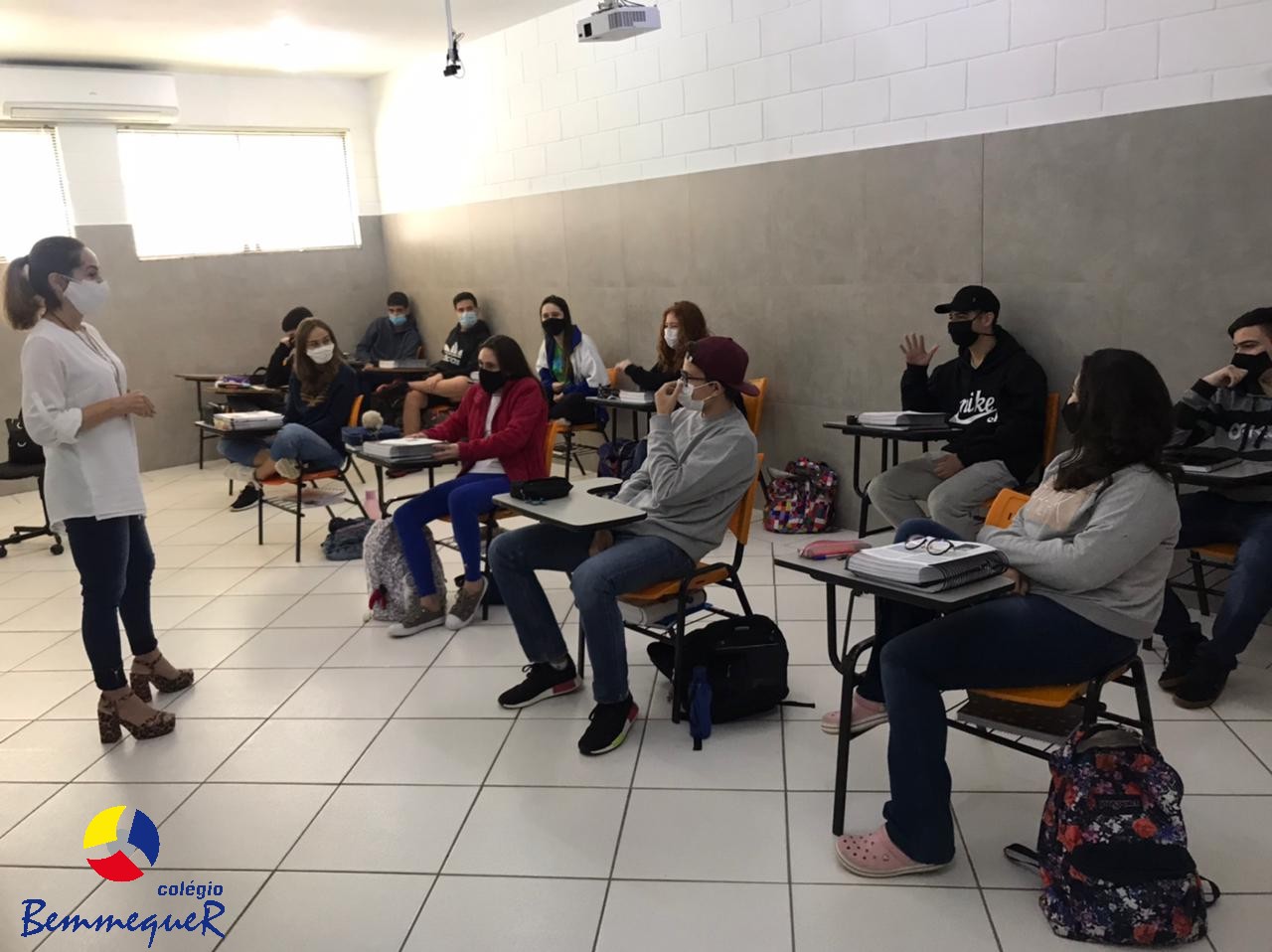 Flávia conversou com os alunos sobre as profissões almejadas por eles: Medicina, Psicologia, Nutrição, Aviação, Engenharia, Veterinária, Economia. A turma de 2021 está diversificada, cheia de sonhos e ideias novas.