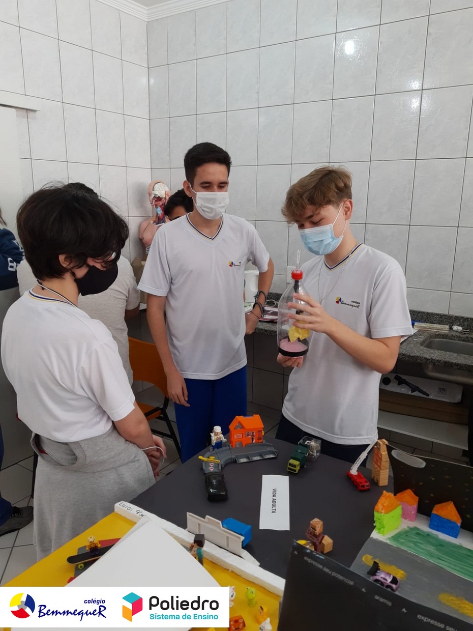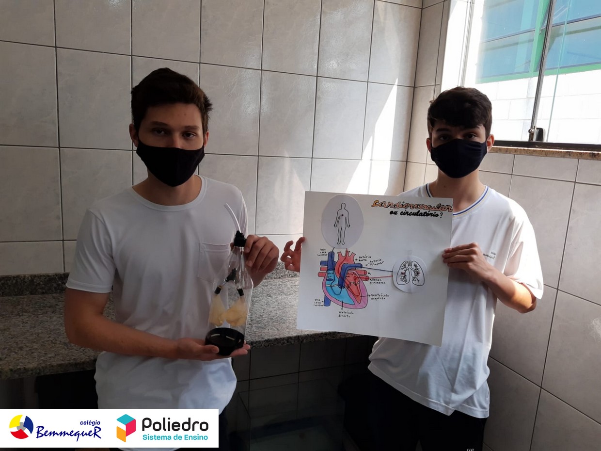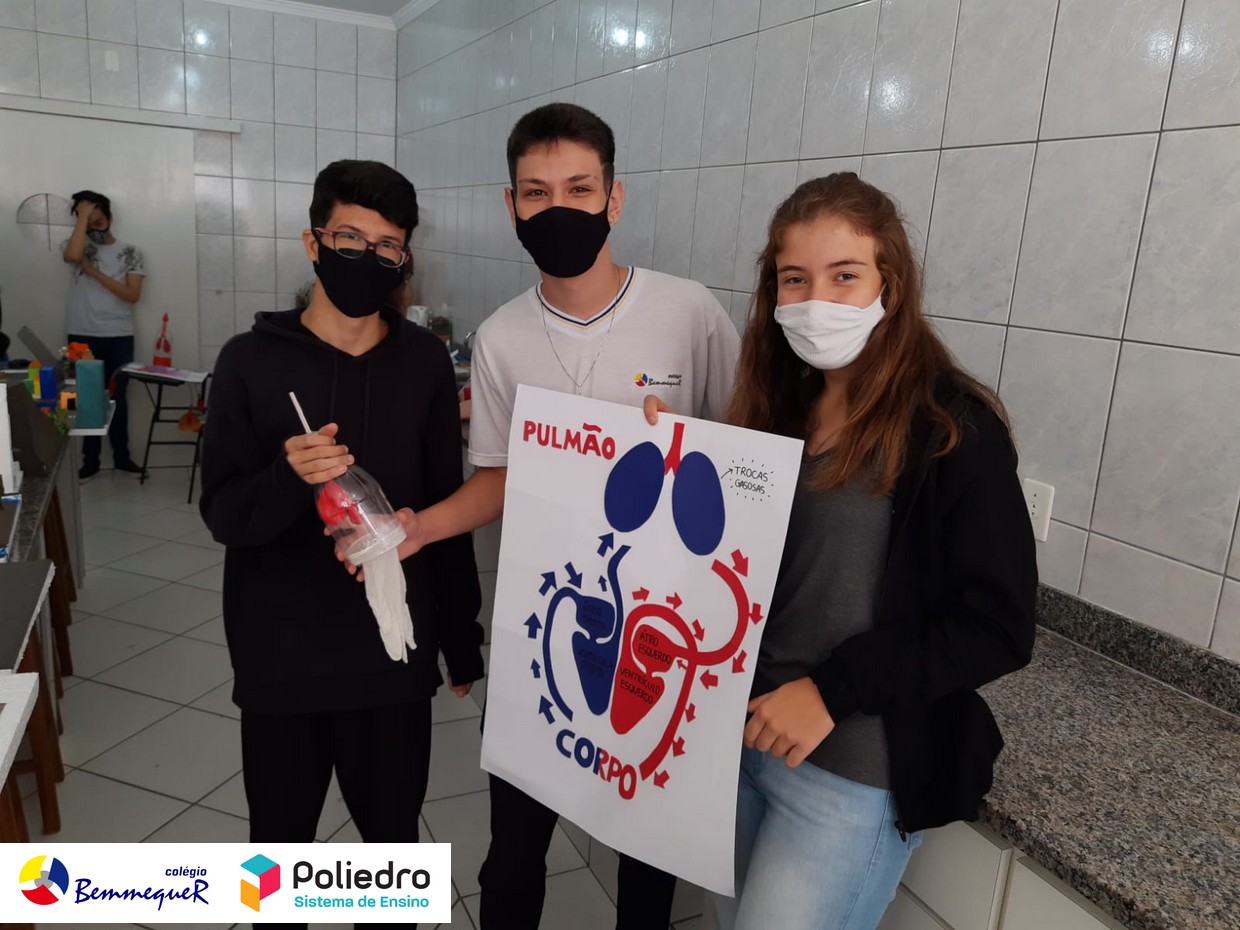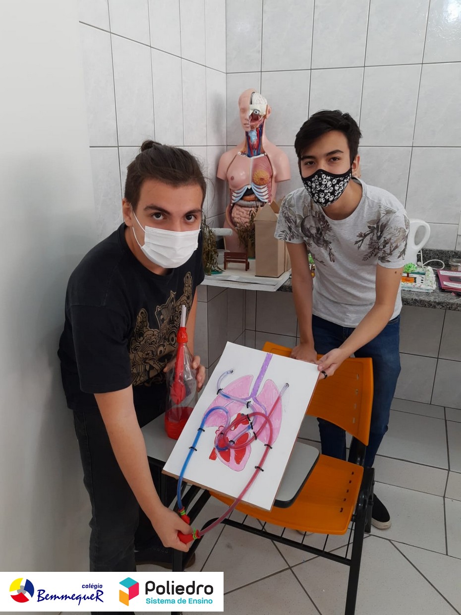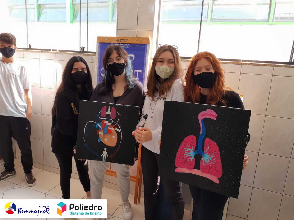 Os alunos da 2ª série do Ensino Médio apresentaram aos alunos das outras salas o funcionamento do pulmão e do coração.