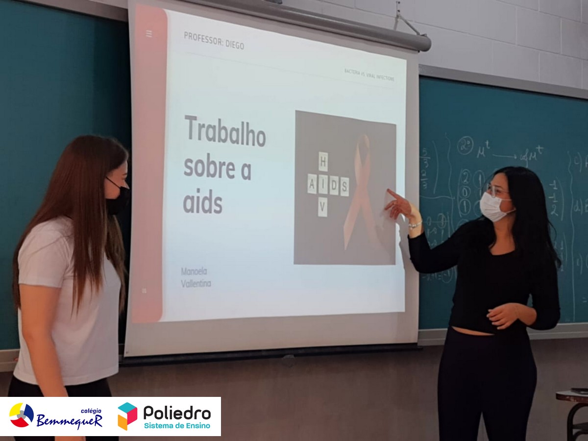 Os alunos da 2ª série do Ensino Médio apresentaram trabalhos sobre doenças causadas por vírus.