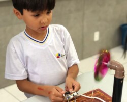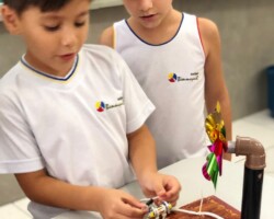 O que aconteceu com essa experiência realizada com materiais simples e pilha foi cientificamente comprovada pelos alunos do 1º ano.