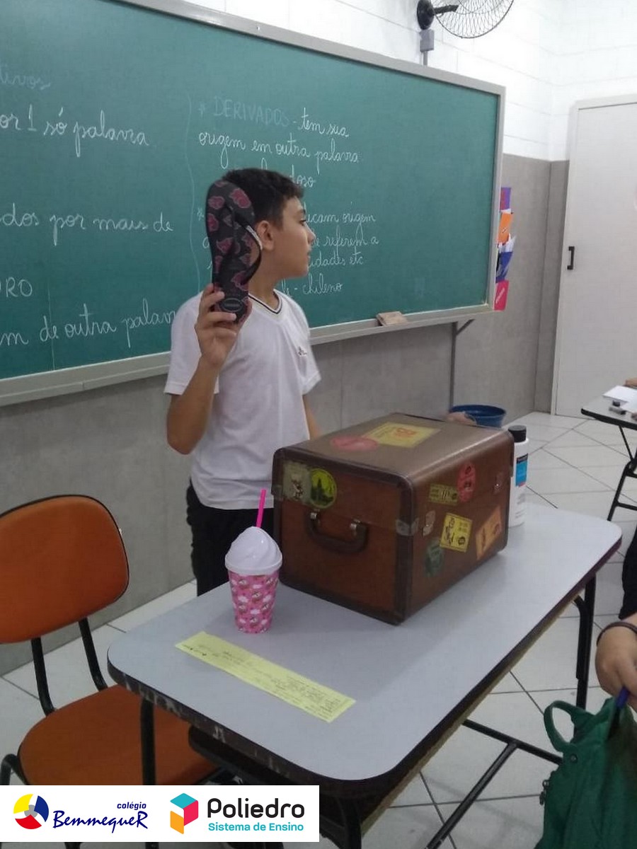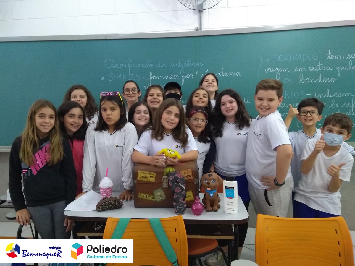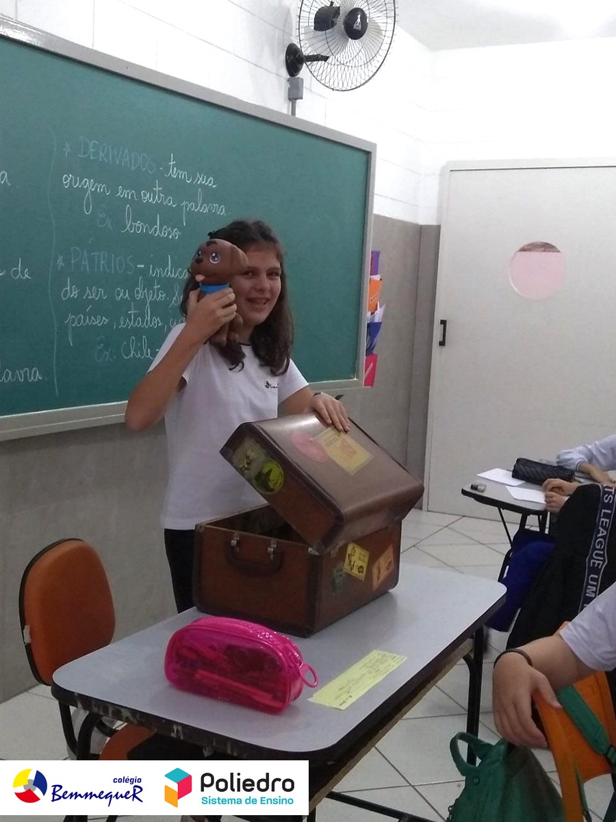 Apresentei à classe alguns objetos que foram colocados numa caixa surpresa. Divididos em grupos, em 1 minuto e meio, os alunos tinham que listar o maior número possível de adjetivos para cada um deles.