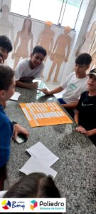 A turma foi dividida em três grupos. Cada grupo recebeu três envelopes com o material necessário. Foi dado um tempo para que completassem o quadro da forma correta.