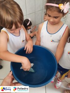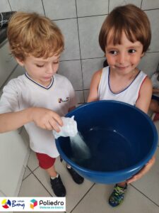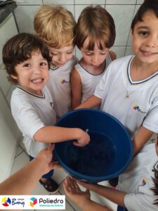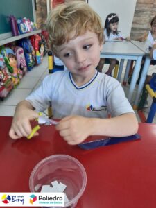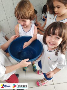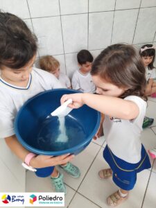 Para comemorar e conscientizar as crianças sobre a importância da água, a turma do Grupo 4 realizou uma atividade bem divertida onde puderem evidenciar as transformações dos estados físicos da matéria no preparo de gelatina.