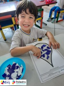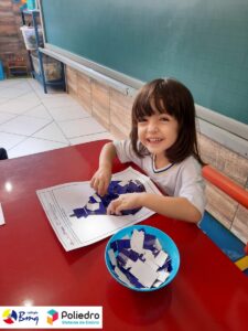 E para finalizar esse dia tão importante, utilizamos os recursos de recorte e colagem que auxiliam no desenvolvimento da psicomotricidade do educando, visando melhorá-lo no processo cognitivo, visomotor e nos sentidos (audição, visão e tato), integrado ao conhecimento estético.