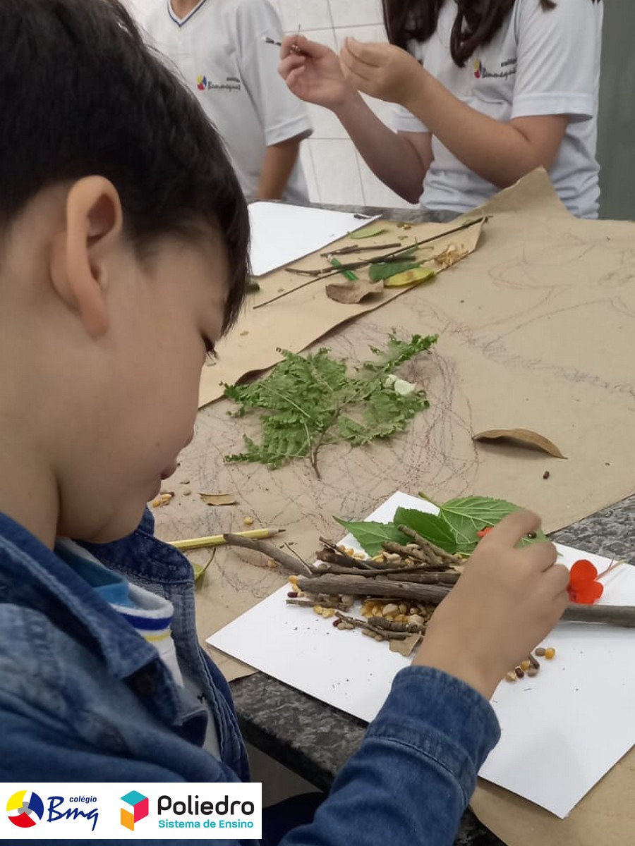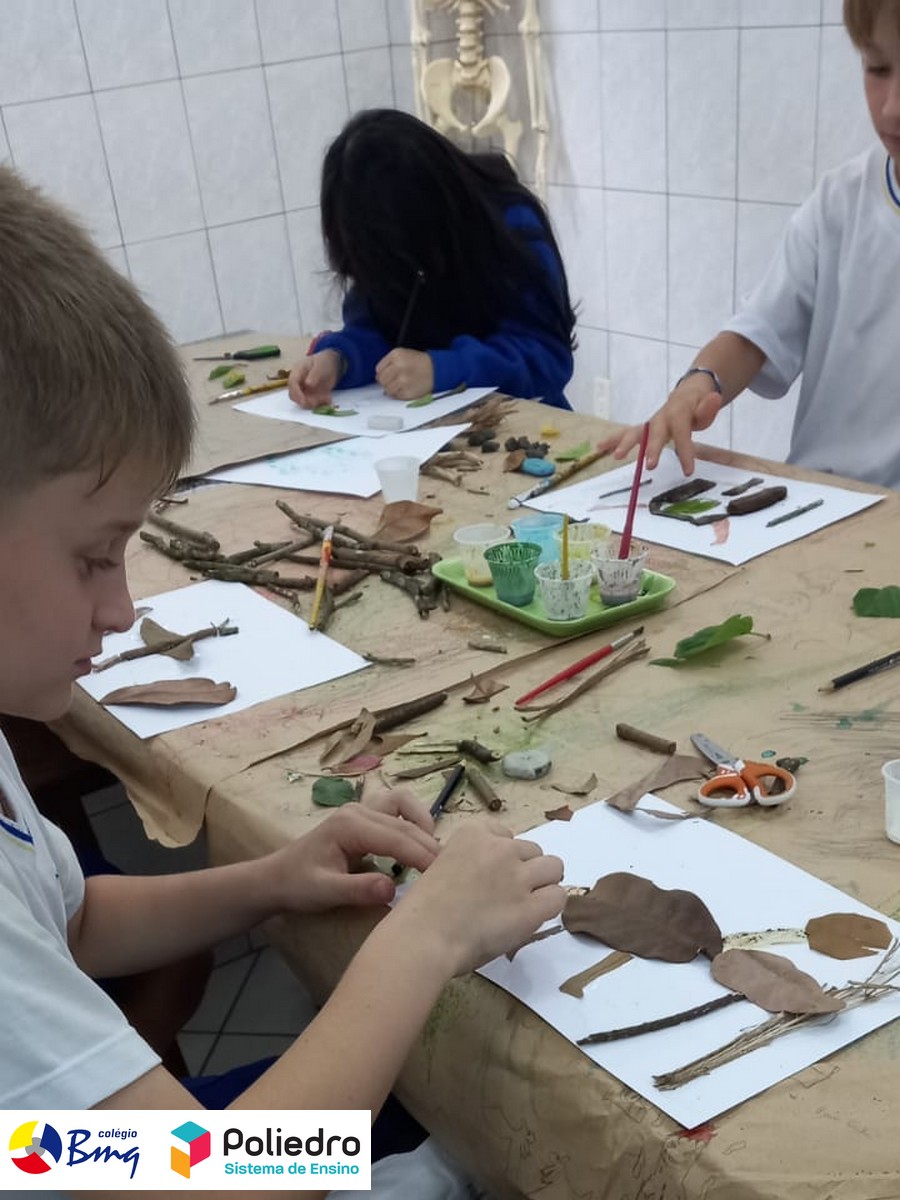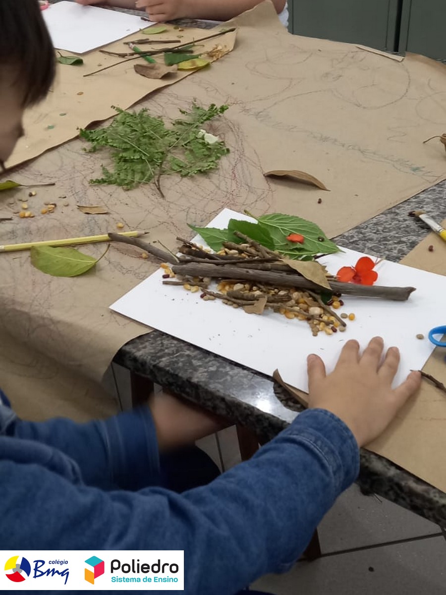 Imaginar, criar, pintar e registrar com galhos, folhas, sementes e tintas naturais.