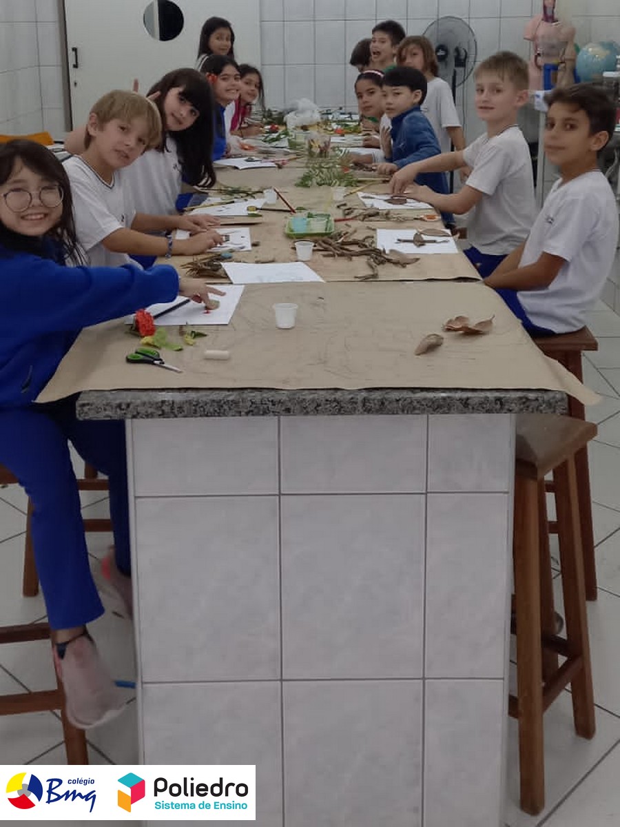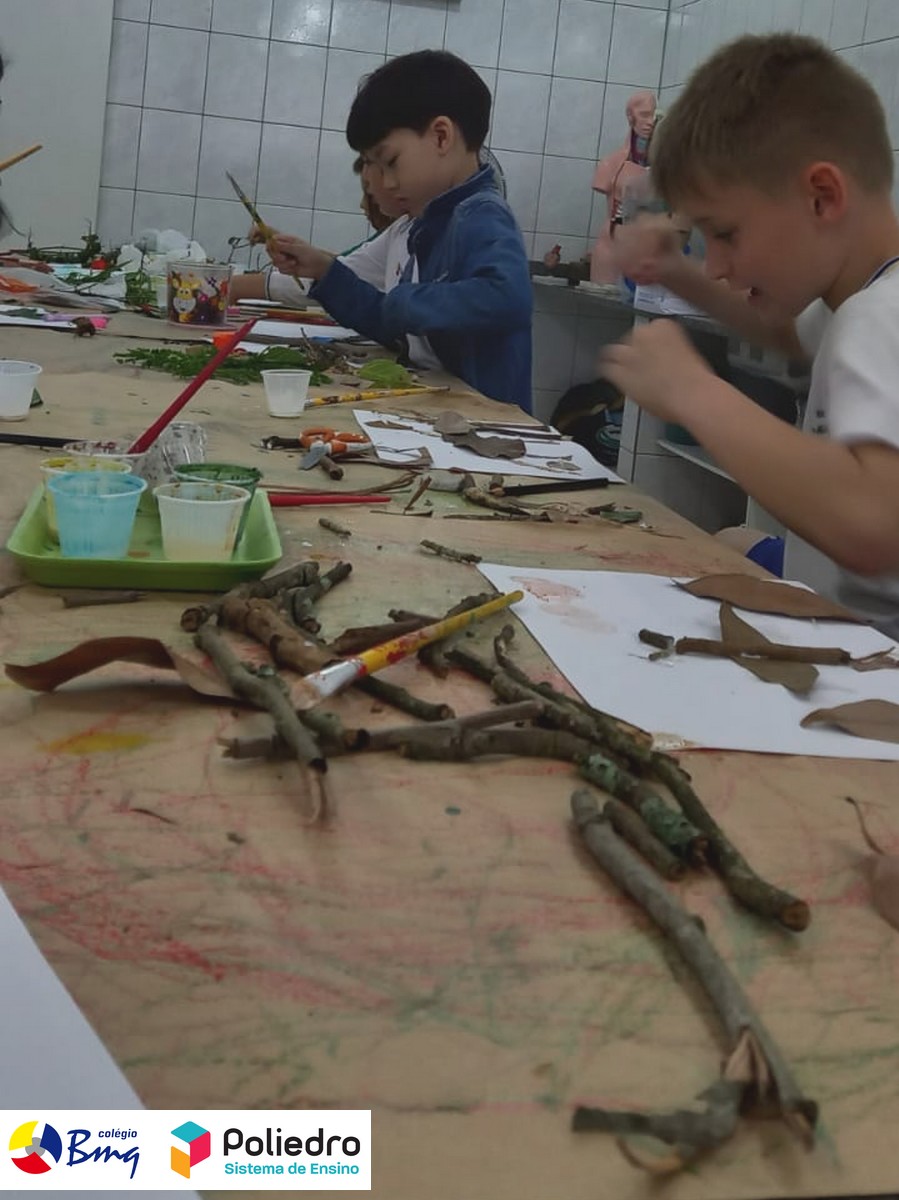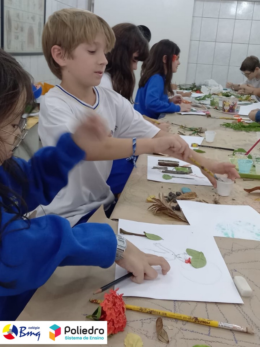 Imaginar, criar, pintar e registrar com galhos, folhas, sementes e tintas naturais.