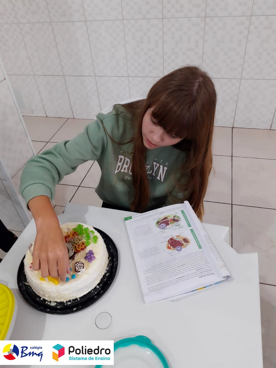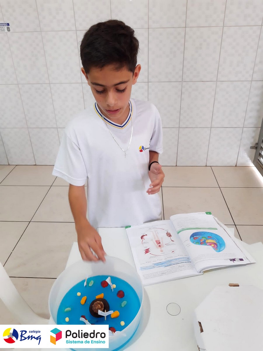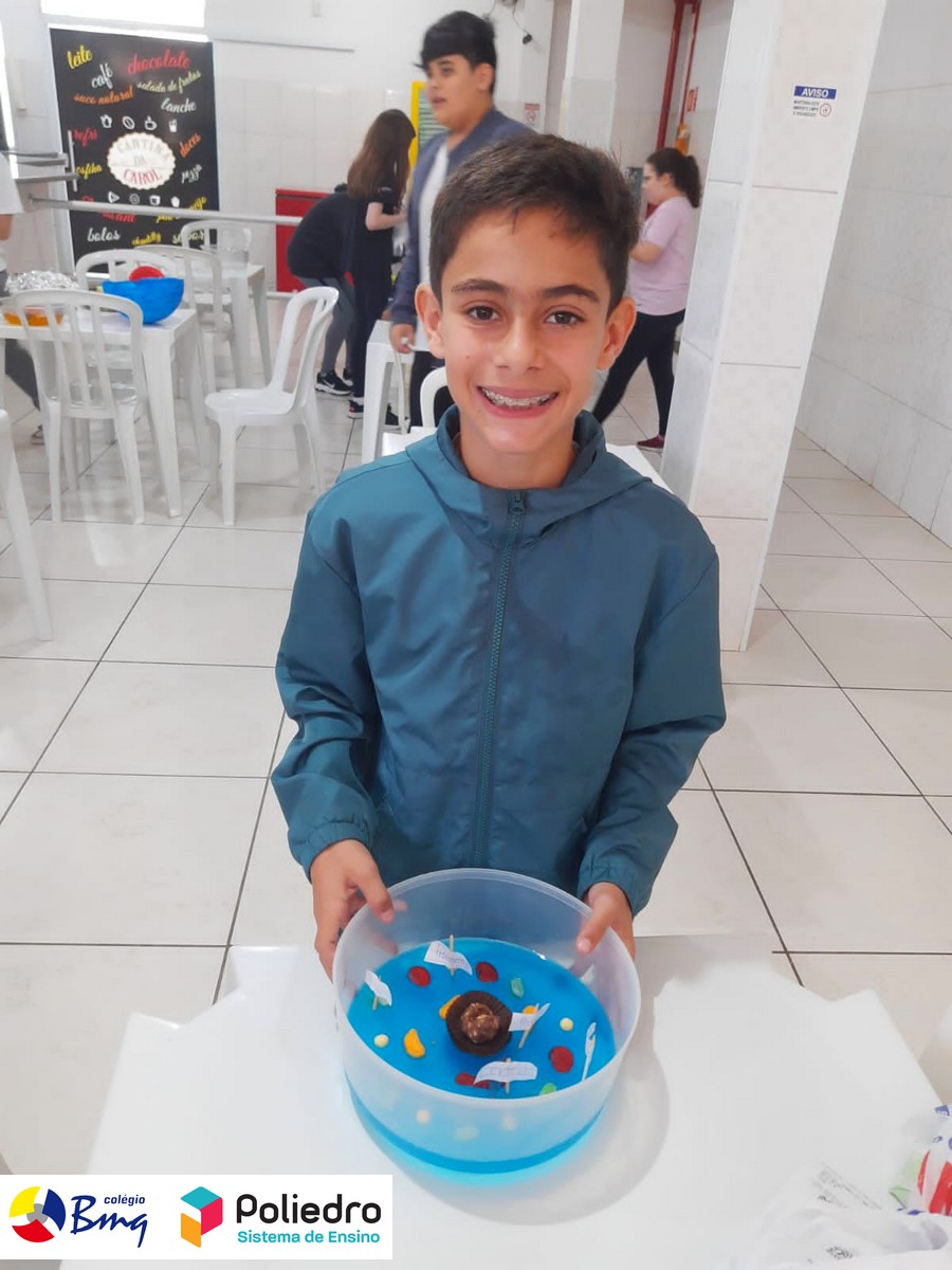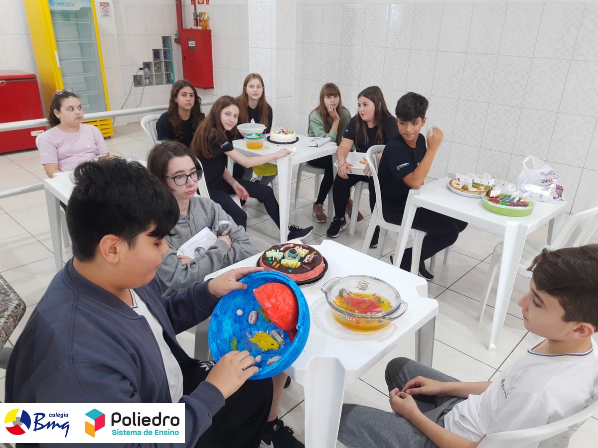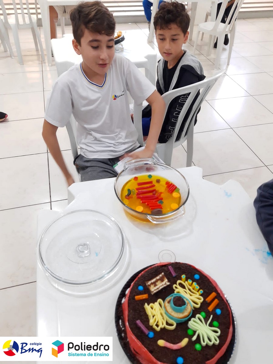 Os alunos do 6° ano, sob a orientação do Prof. Diego, elaboraram modelos celulares de uma forma divertida e deliciosa, onde aprenderam sobre as organelas celulares e organização celular, posteriormente os alunos deliciaram-se com suas células!