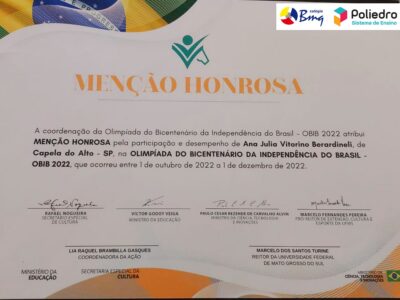 Nesta sexta-feira, 22 de setembro, fizemos a entrega das medalhas da “Olimpíada Canguru de Matemática” e da “Olimpíada do Bicentenário da Independência do Brasil” dos alunos classificados. Parabéns para todos os participantes, independente da classificação.
