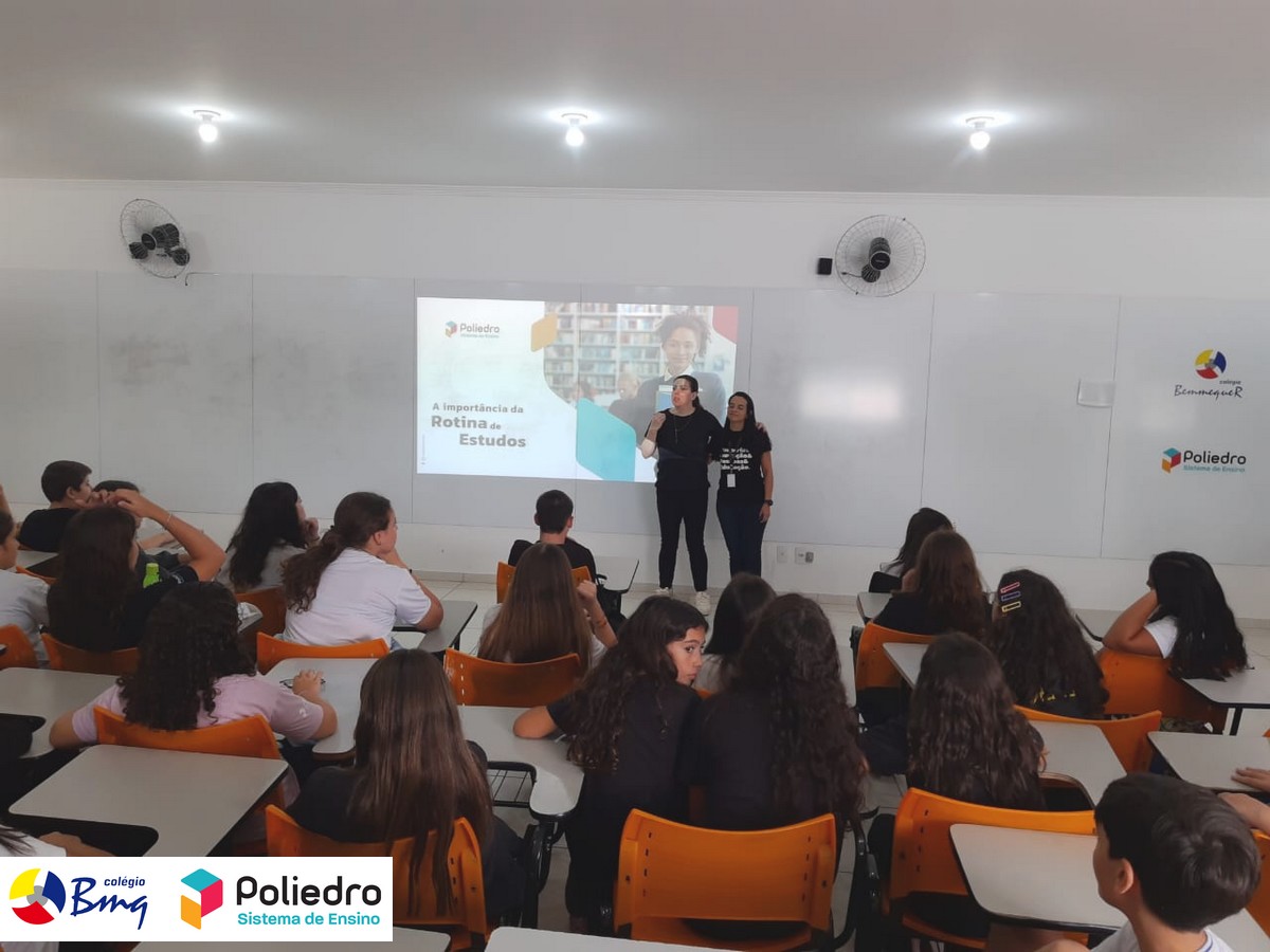 Orientou os alunos quanto à rotina de estudos, como se organizar e a sua importância, independente da profissão a ser escolhida.