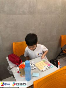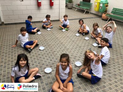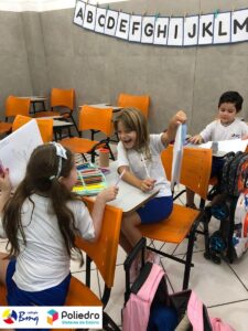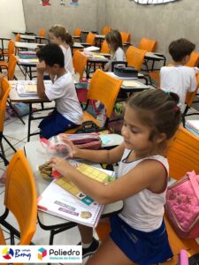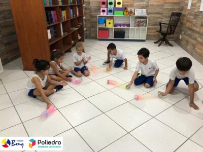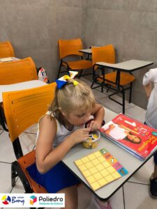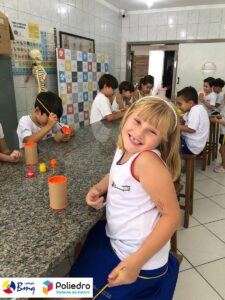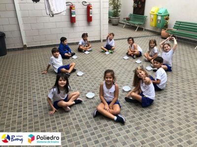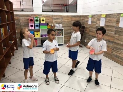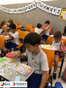 Nossas aulas são fundamentadas nas vivências e nas experiências. Nas atividades de consciência silábica, os jogos ajudam nesse processo de alfabetização. Ao manusear diferentes objetos, damos a possibilidade aos alunos de usarem a imaginação.