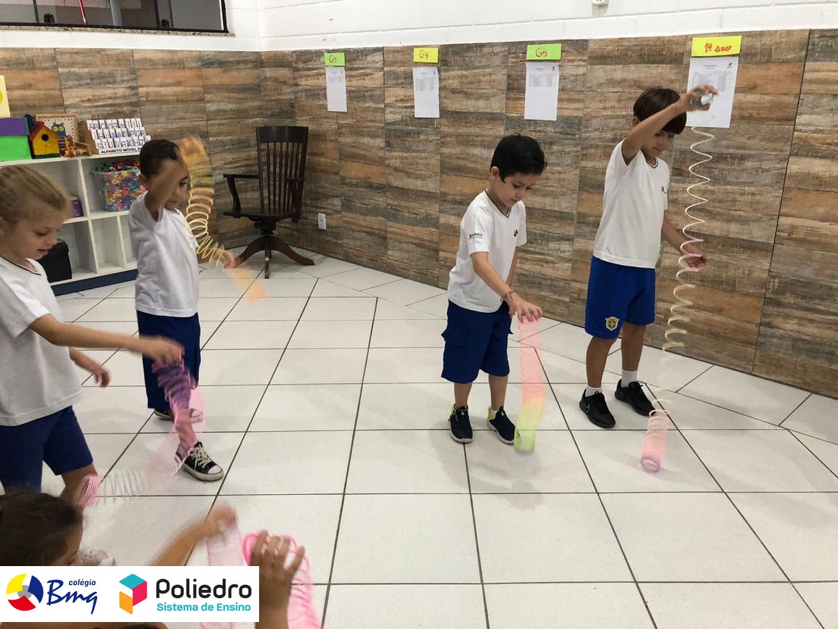 Nossas aulas são fundamentadas nas vivências e nas experiências. Nas atividades de consciência silábica, os jogos ajudam nesse processo de alfabetização. Ao manusear diferentes objetos, damos a possibilidade aos alunos de usarem a imaginação.