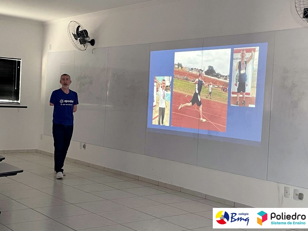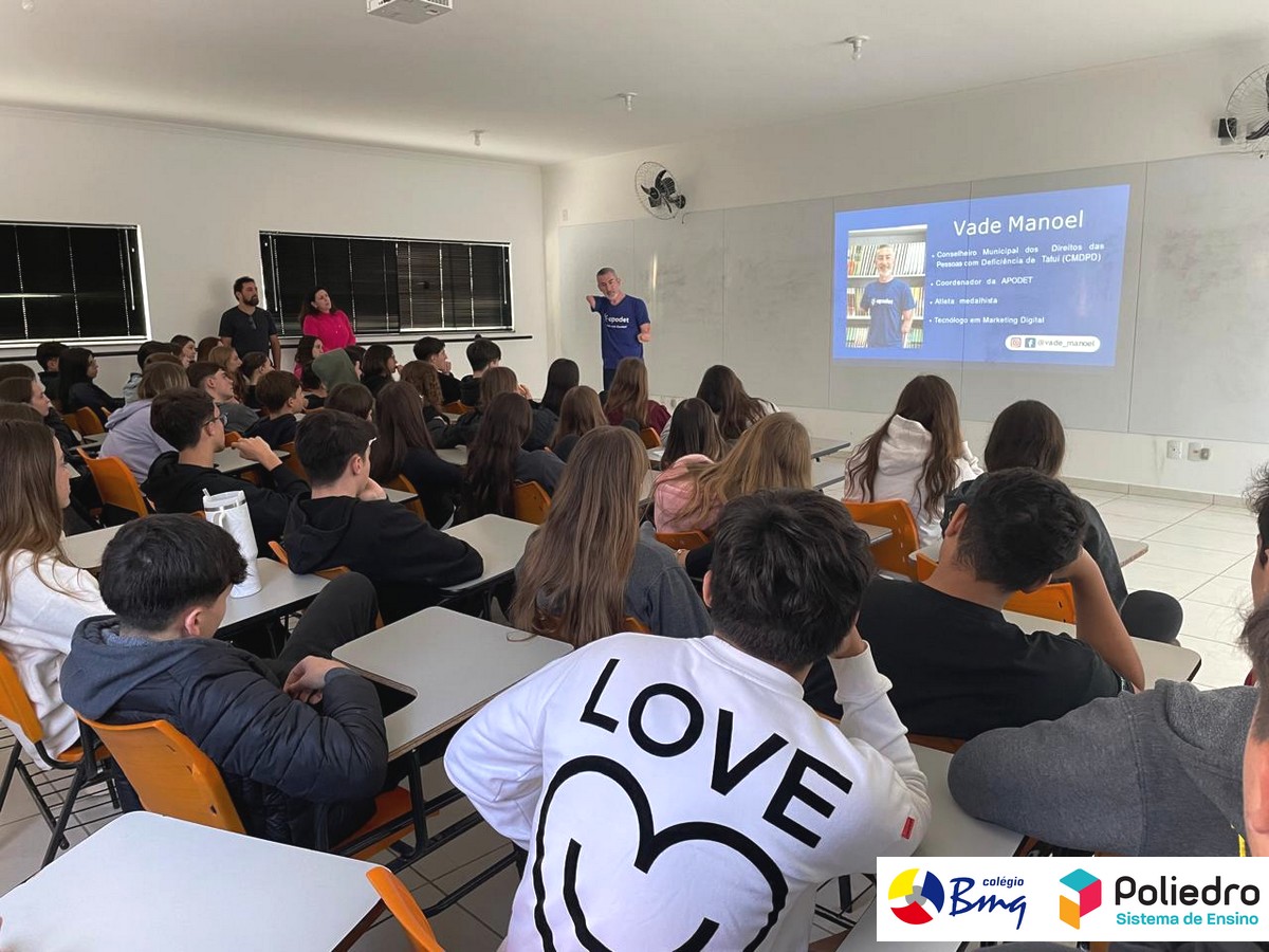 Hoje, Vade Manoel, nos deu a honra da sua visita. Vade é Coordenador da APODET e desde que sofreu um acidente e precisou amputar os dois braços para não perder a vida, luta pelos direitos dos deficientes físicos. Ele nos contou um pouco da sua história de vida, dividindo conosco a importância do conhecimento adquirido através dos estudos, do respeito entre as pessoas e da gratidão pela vida, que Deus nos oferece todos os dias quando acordamos.