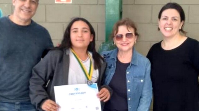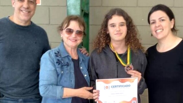 Na última sexta-feira, foram entregues as medalhas dos alunos classificados nas Olimpíadas Canguru de matemática. A escola ganhou 1 medalha de ouro, 3 medalhas de prata, 5 medalhas de bronze e 10 medalhas de honra ao mérito. Todos com excelentes pontuações.