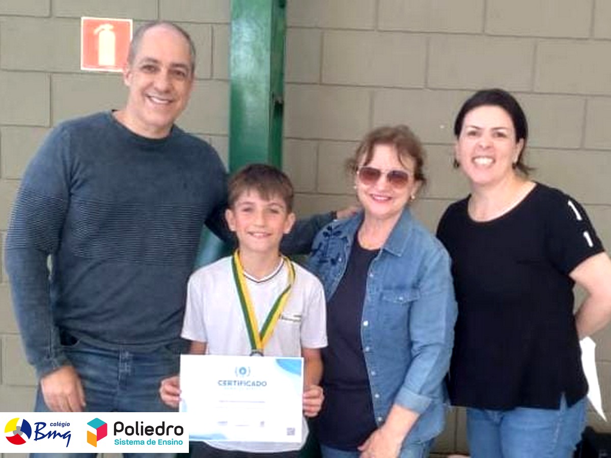 Na última sexta-feira, foram entregues as medalhas dos alunos classificados nas Olimpíadas Canguru de matemática. A escola ganhou 1 medalha de ouro, 3 medalhas de prata, 5 medalhas de bronze e 10 medalhas de honra ao mérito. Todos com excelentes pontuações.