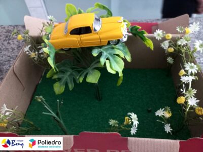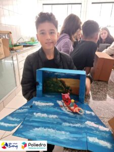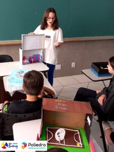 O projeto “Livro na Caixa” foi realizado com os alunos do 6º e 7º ano. Cada aluno escolheu um livro que leu ao longo do bimestre e, a partir disso, foi desafiado a criar uma “caixa literária”. Dentro da caixa, os estudantes colocaram itens que representassem aspectos importantes da história, como personagens, cenários, objetos simbólicos ou até mesmo cenas marcantes do livro escolhido.