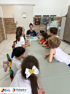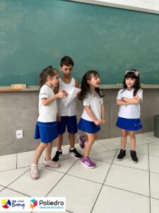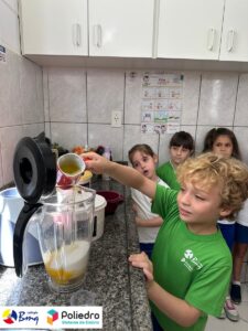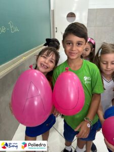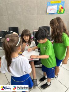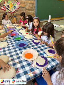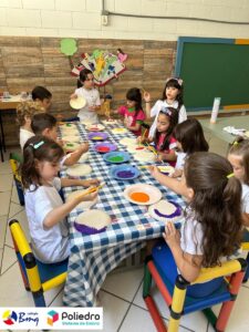 A escola é um ambiente extremamente enriquecedor, onde podemos trabalhar diversas habilidades e vivências. Os alunos do primeiro ano tiveram a oportunidade de realizar experiências, receitas para assimilarem as quantidades, compreensão do tempo através de observação de fotos, parlendas, brincadeiras para desenvolver leitura e pinturas com tintas.