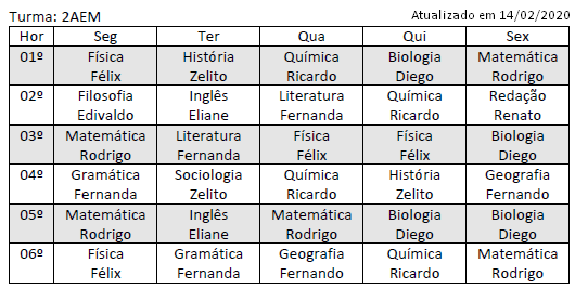 • Horários de Aulas