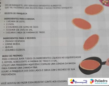O Grupo 3 preparou uma deliciosa receita de panqueca com recheio de queijo e carne.