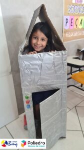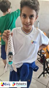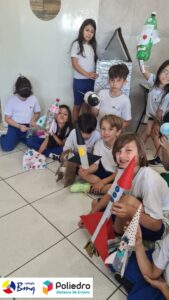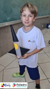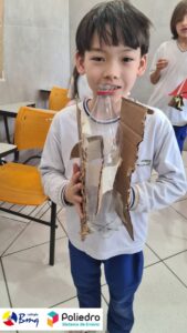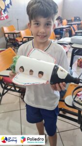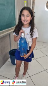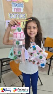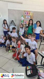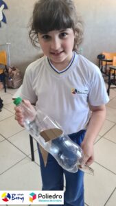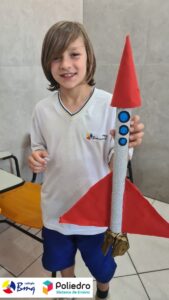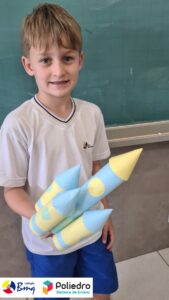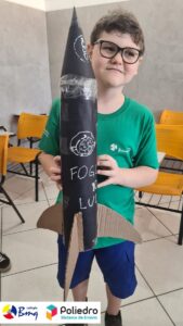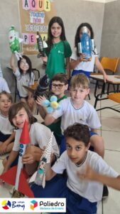 Cada aluno construiu seu próprio foguete com sucata.
