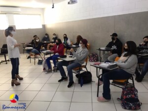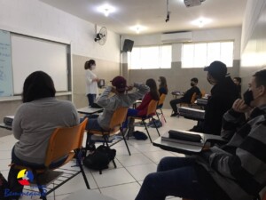 Flávia conversou com os alunos sobre as profissões almejadas por eles: Medicina, Psicologia, Nutrição, Aviação, Engenharia, Veterinária, Economia. A turma de 2021 está diversificada, cheia de sonhos e ideias novas.