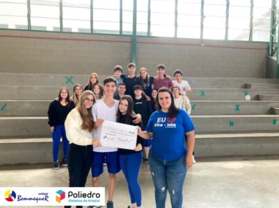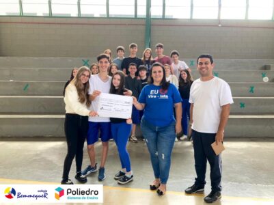 Durante o 1º bimestre, os alunos da 1ª série do Ensino Médio trabalharam com diversos gêneros textuais da área empresarial como currículos, carta de apresentação, e-mail de solicitação, marketing, pauta de reunião, etc. Dessa forma, eles participaram de um projeto que envolveu a criação de uma empresa com os cargos para serem ocupados, além disso, participaram de entrevistas de emprego e, depois de contratados, criaram um produto para ser vendido durante o intervalo. O lucro da venda desse produto seria destinado a duas ONGs da cidade que foram escolhidas por eles. Hoje, foi o dia de receber em nosso colégio a ONG Resgatando Anjos, que resgata animais de rua da cidade. A responsável falou sobre a história e desafios da ONG e recebeu o valor que os alunos conseguiram com a venda dos produtos.