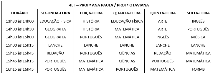 • Horário de Aulas